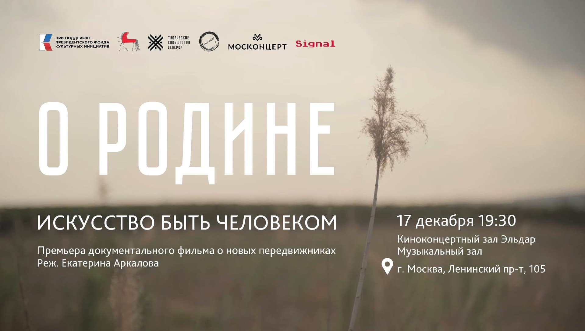 Документальную картину представит режиссер Екатерина Аркалова и художники творческого сообщества «Северск». Фильм посвящен подвижникам культуры и людям, сохраняющим историческую память – тех, кого живописцы Данил Даниловский, Дмитрий Мясников и Иван Чухновский, встретили в местах проведения выставки «О Родине». Фильм о земле, ставшей благодаря этим людям непокорëнной. Проект «О Родине» реализуется при поддержке Президентского фонда культурных инициатив