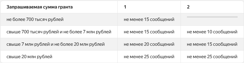 Обратите внимание: для проектов, получивших грантовую поддержку, существуют требования для публикации или выпуска сообщений с упоминанием проекта. Они будут указаны в договоре предоставления гранта и отличаются, исходя из запрашиваемой суммы гранта: