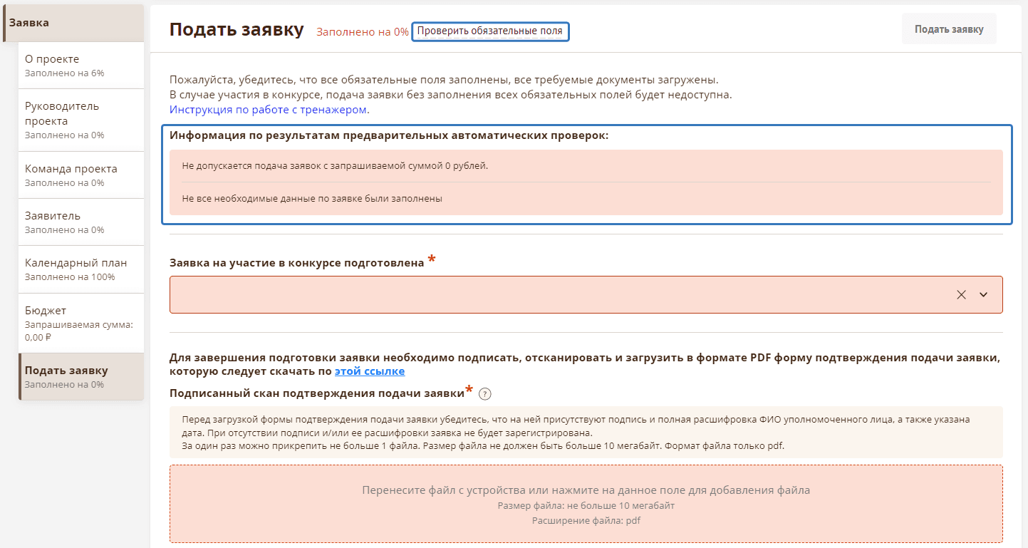 Помните, что после того, как вы подадите заявку, доступ к ее редактированию будет закрыт. Поэтому настоятельно рекомендуем еще раз внимательно ознакомиться с содержанием вашего проекта.