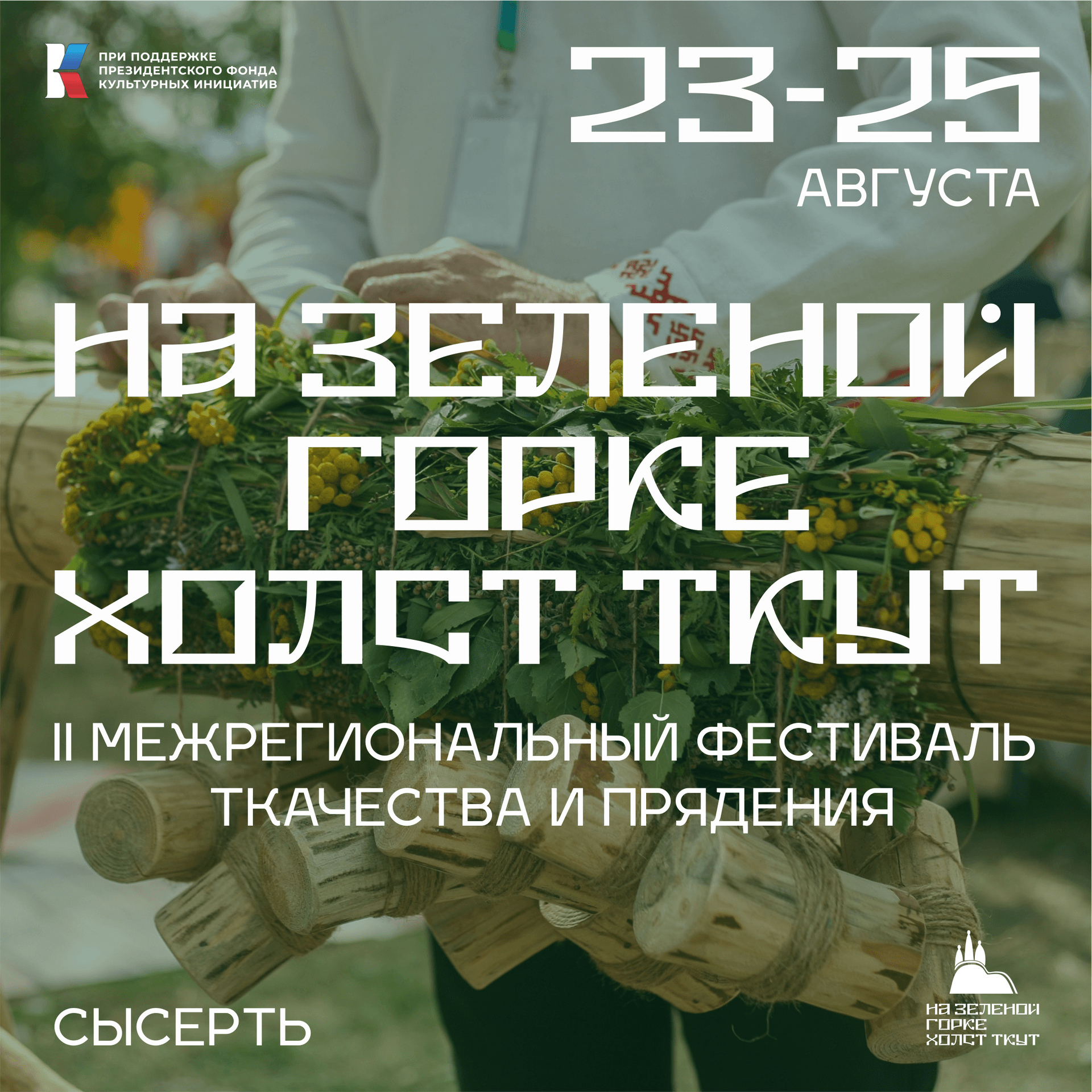 В городе Сысерти Свердловской области во второй раз пройдет Межрегиональный фестиваль ткачества и прядения «На зеленой горке холст ткут», организованный Домом ремёсел «Живинка в деле» при поддержке Президентского фонда культурных инициатив.