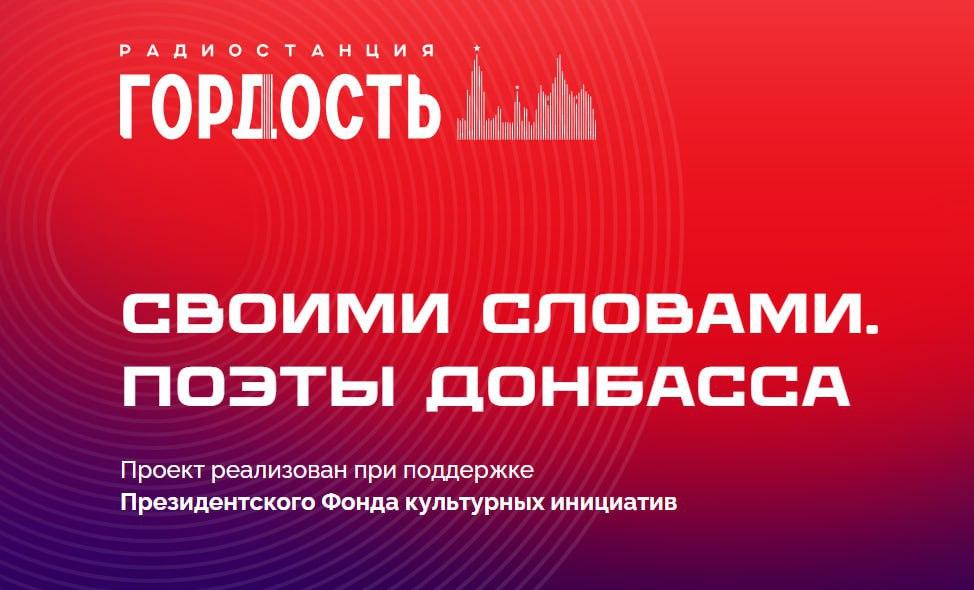 Кинокомпания «АПРЕЛЬ» и «Радио «Гордость» запустили в федеральном эфире цикл программ «Своими словами. Поэты Донбасса». В выпусках прозвучат стихи о героях специальной военной операции и восстановлении Новой России. Проект реализуется при поддержке Президентского Фонда культурных инициатив. В программы войдут произведения и истории более чем 50 современных поэтов из Донецка, Луганска, Севастополя, Екатеринбурга, Тюмени и даже Китая. Известные и пока еще малознакомые широкой публике авторы. Свое творчество в проекте презентуют Влад Маленко, Анна Долгарева, Дмитрий Артис, Мария Ватутина, Ольга Старушко, Роман Сорокин, Дмитрий Мельников, а также участники СВО, военкоры, волонтеры, жители регионов Донбасса и Новороссии, пишущие о героях спецоперации, Родине, личном героизме простых людей.