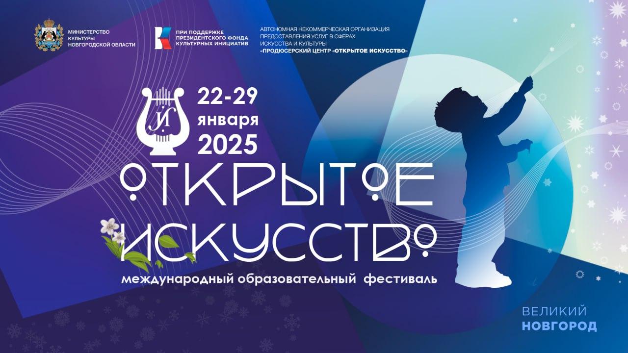 С 22 по 29 января 2025 года в Великом Новгороде при поддержке Президентского фонда культурных инициатив и Министерства культуры Новгородской области пройдет Пятый Международный образовательный фестиваль «Открытое искусство» для молодых талантов. Чтобы стать участником фестиваля необходимо до 1 декабря подать заявку и отправить материалы для заочного конкурса. В проекте могут участвовать дети и подростки от 8 до 18 лет, занимающиеся музыкой, танцами, изобразительным или театральным искусством. По результатам первого этапа финалисты поедут в Великий Новгород, где встретятся с лучшими педагогами нашей страны, примут участие в мастер-классах, конкурсных прослушиваниях, концертных выступлениях, экскурсиях.