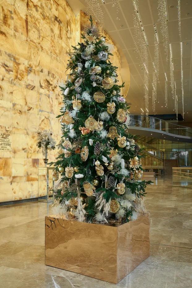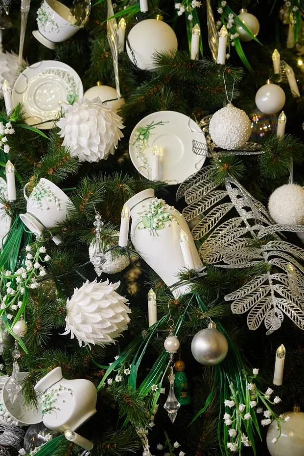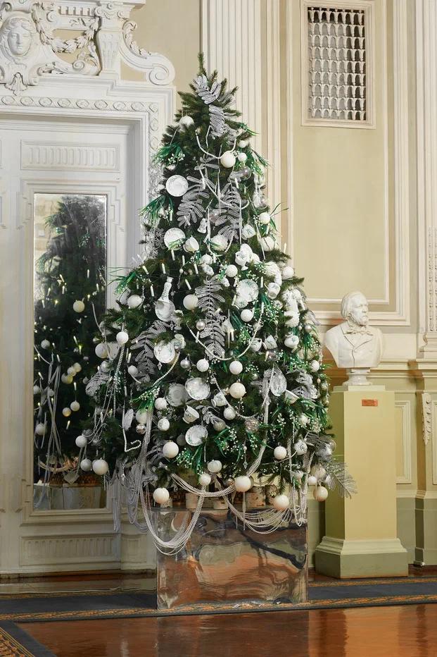 На исторической сцене — ель «Русский балет», лейтмотивом украшения которой станет биография Сергея Дягилева. В декоре ели будут использованы пуанты, белые лебеди, бархатные шары и изделия ручной работы, выполненные мастером с ограниченными возможностями здоровья. Будут на ели и дягель (растение, от которого берет начало фамилия), и белые орхидеи из сканов коллекции старинных гербариев СПбГУ, которыми Сергей Дягилев оформлял свои первые выставки. Ель также украсят тончайшие изделия Императорского фарфорового завода в цветовой гамме ели. На новой сцене Мариинского театра появится ель «Жар-птица». Ее декор посвящен композитору Игорю Стравинскому, его семье и балету «Жар-птица». Ель украсят куклы «Потешного промысла» по эскизам Льва Бакста и эскизы Александра Головина к балетам. Из художественных промыслов будут использованы изделия Императорского фарфорового завода в золотых тонах. Камерный зал Рахманинова украсит цветочная ель с архивными фотографиями семьи Сергея Рахманинова из Центрального государственного архива кинофотофонодокументов Санкт-Петербурга.