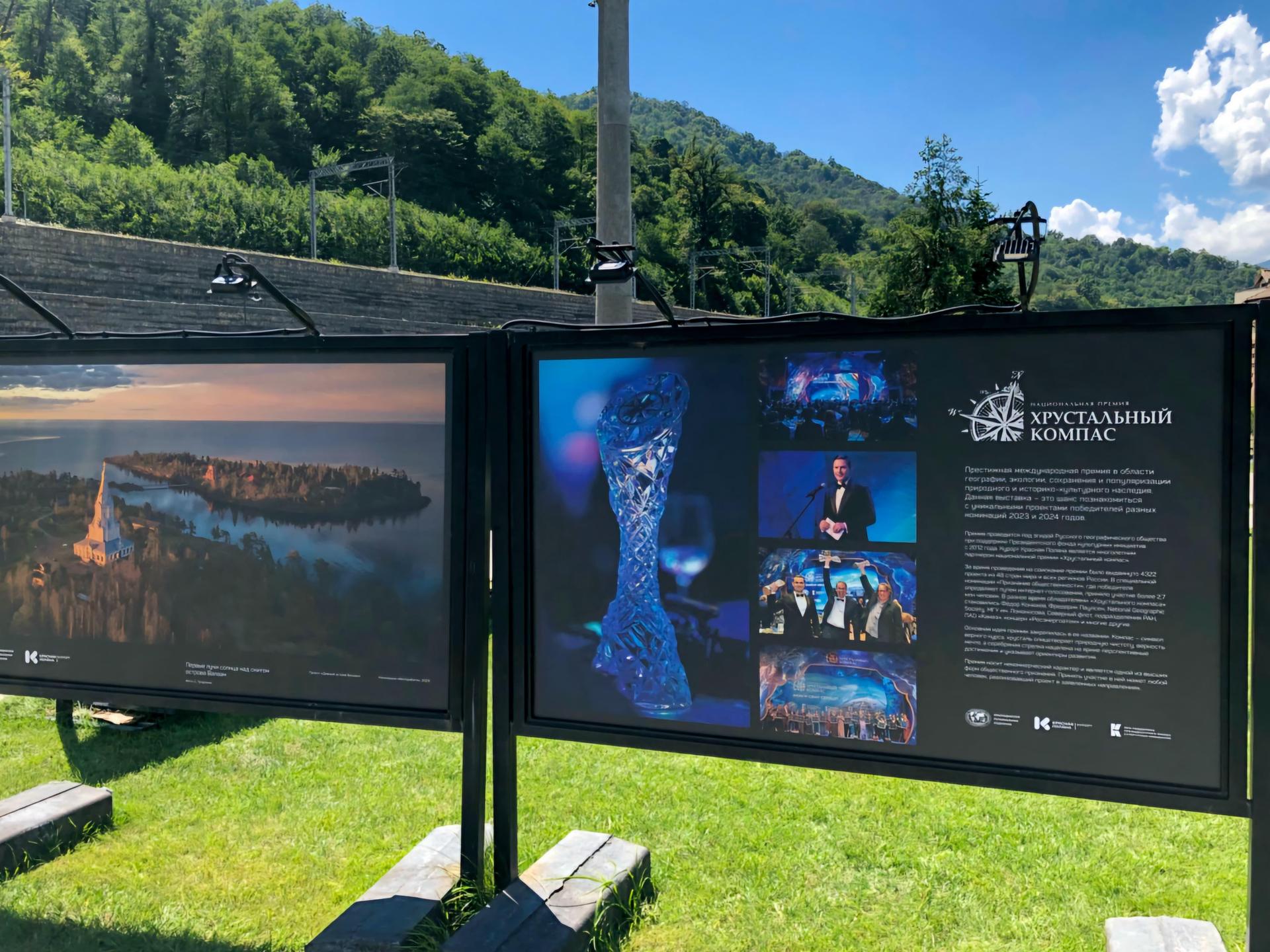 Выставка посвящена победителям национальной премии «Хрустальный компас». Премия ежегодно отмечает выдающиеся достижения в области географии, экологии и просветительства, а также поддерживает инициативные проекты, которые вносят вклад в сохранение природного наследия. На стендах выставки были представлены уникальные исследования и экспедиции, проведенные современными учеными, которые посвятили свои усилия изучению природы, охране окружающей среды и популяризации научных знаний.