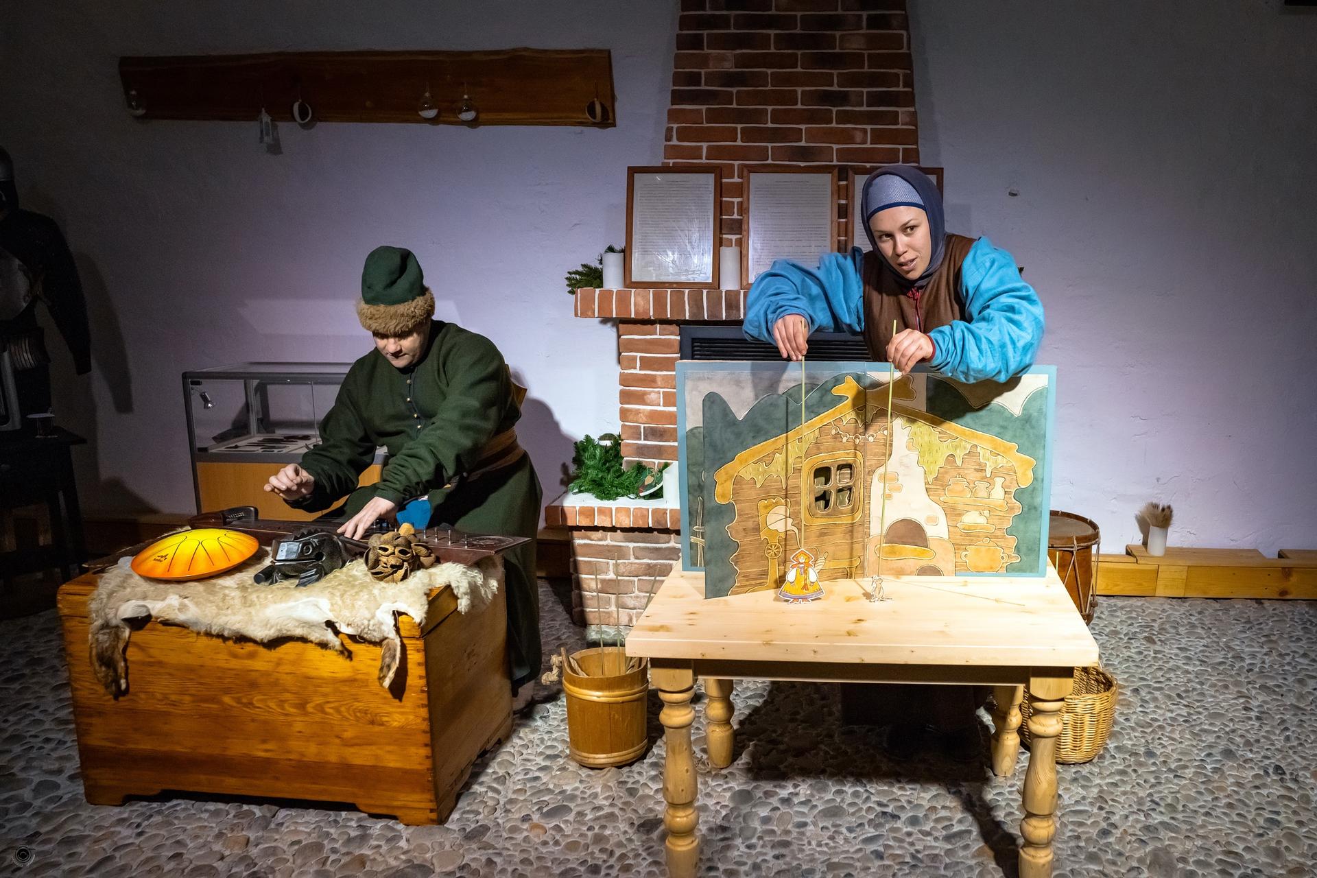 В уютной атмосфере согревающего камина с ароматным чаем и баранками зрители могут погрузиться в мир волшебных историй о добре. Первой из них стала русская народная сказка «Гуси-лебеди». У камина артисты также рассказывают русскую сказку «Про Ивана-дурака» и «Серую Шейку» Дмитрия Мамина-Сибиряка.
