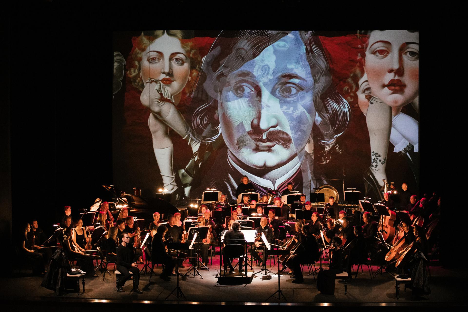 16 февраля театральную программу фестиваля продолжит спектакль-концерт, созданный к 90-летию композитора Альфреда Шнитке «Видный миру смех и неведомые ему слезы». В исполнении Государственного симфонического оркестра «Новая Россия» под руководством Юрия Башмета прозвучит «Гоголь-сюита» Шнитке и фрагменты поэмы Николая Гоголя «Мертвые души». Музыка Альфреда Шнитке невероятно точно отражает парадоксальность, юмор, глубину и самобытность гоголевского текста, а выбранные специально для этого спектакля части оригинального текста поражают своей эксцентричностью, свежестью и современностью. Здесь не будут звучать знакомые фамилии: Ноздрев, Манилов, Коробочка, Плюшкин. В центре внимания — совсем другие персонажи Николая Гоголя в исполнении замечательного актерского дуэта Евгения Миронова и Марии Смольниковой.
