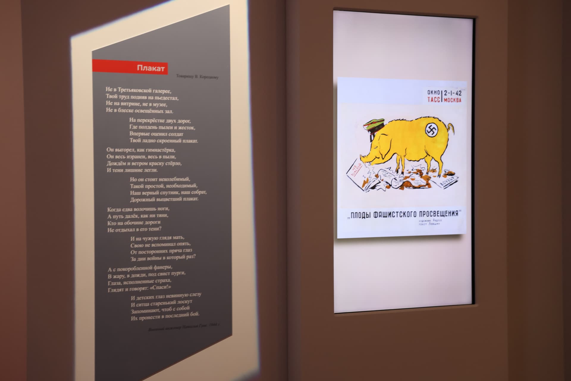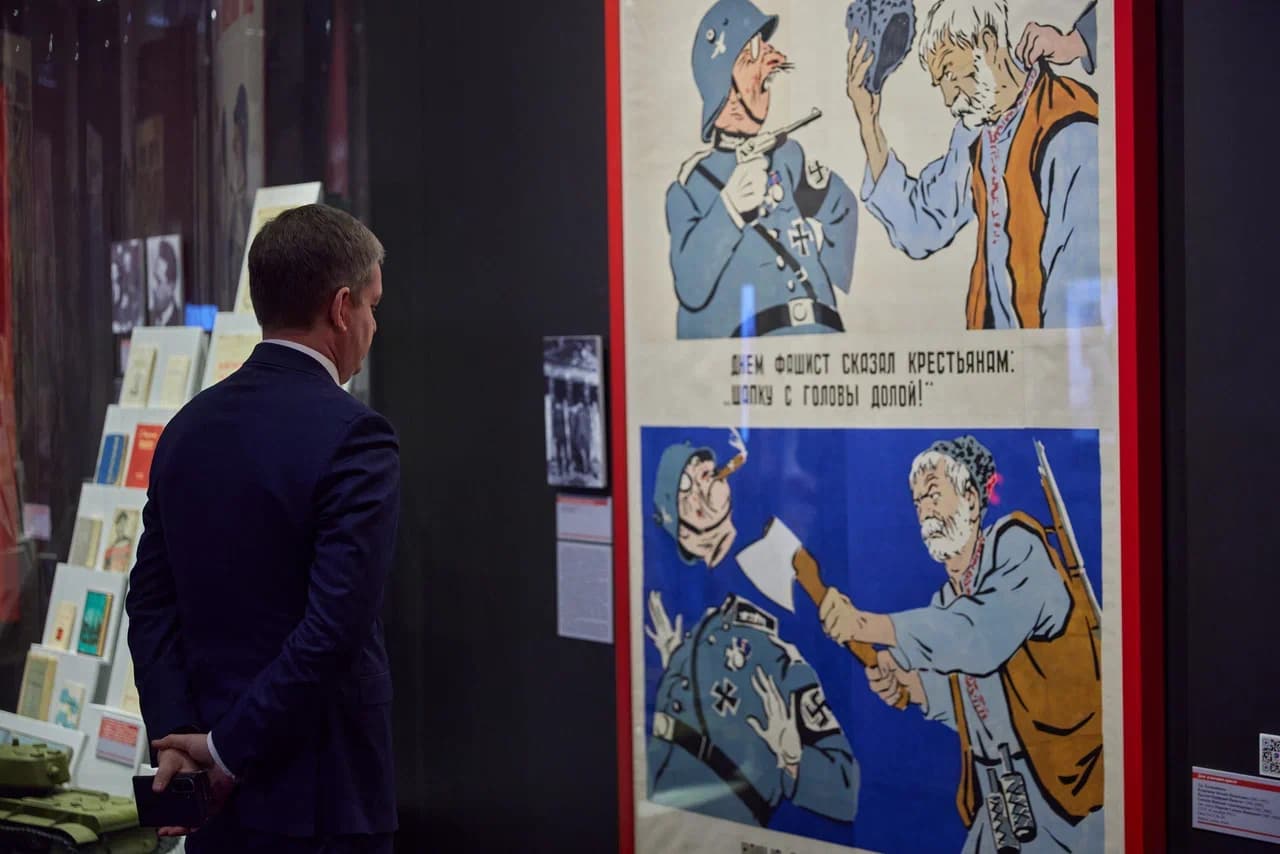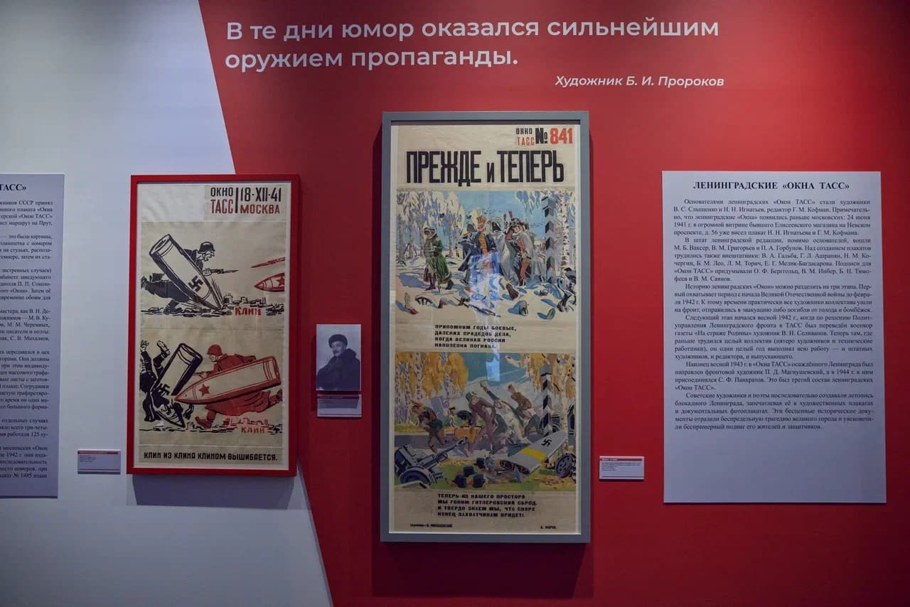 «"Окна ТАСС" — пример эффективных действий в критические моменты для страны. Это образец мобилизации культурных деятелей, объединения ради поднятия боевого духа как бойцов, так и работников тыла. Мы видим на выставке не только идеологические плакаты, но и листовки, которые были нацелены на подрыв веры в победу у противника. Я абсолютно убеждён, что выставки в наше время и те выставки, которые проводятся в Музее современной истории, — это созвучный с нашим временем отдельный вид искусства, который зачастую эффективнее, чем "цифра" доставляет до человека сообщение, которое мы хотим до него донести».