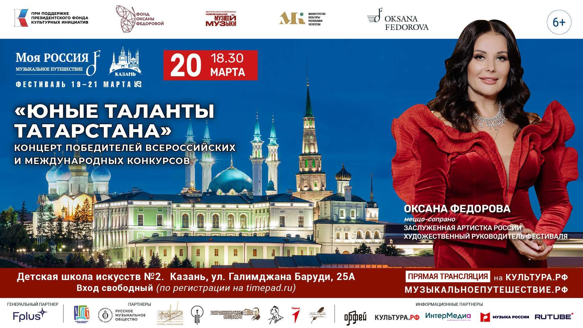С 19 по 21 марта в Казани пройдет Всероссийский фестиваль «Моя Россия: музыкальное путешествие», который реализуется фондом Оксаны Федоровой при поддержке Президентского фонда культурных инициатив. Казань станет пятым городом, который примет музыкальный марафон. Сам проект стартовал в октябре 2024 года в Пскове и завершится в июне 2025 года в Кисловодске. Как отметила президент Фонда, художественный руководитель Фестиваля Оксана Федорова, «фестиваль «Моя Россия: музыкальное путешествие» направлен на объединение регионов России под эгидой великого музыкального наследия нашей страны. Мы уже провели фестиваль в Пскове, Москве, Санкт-Петербурге и Уфе, и видим, насколько богата наша страна юными талантами и как важно помогать подрастающему поколению музыкантов расти профессионально и расширять свой концертный опыт. Казань сегодня является одной их культурных столиц, и я рада, что в музыкальной программе наряду с произведениями русских классиков будут представлены национальные произведения».