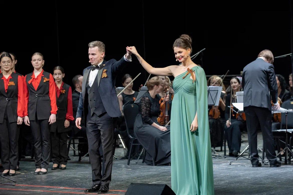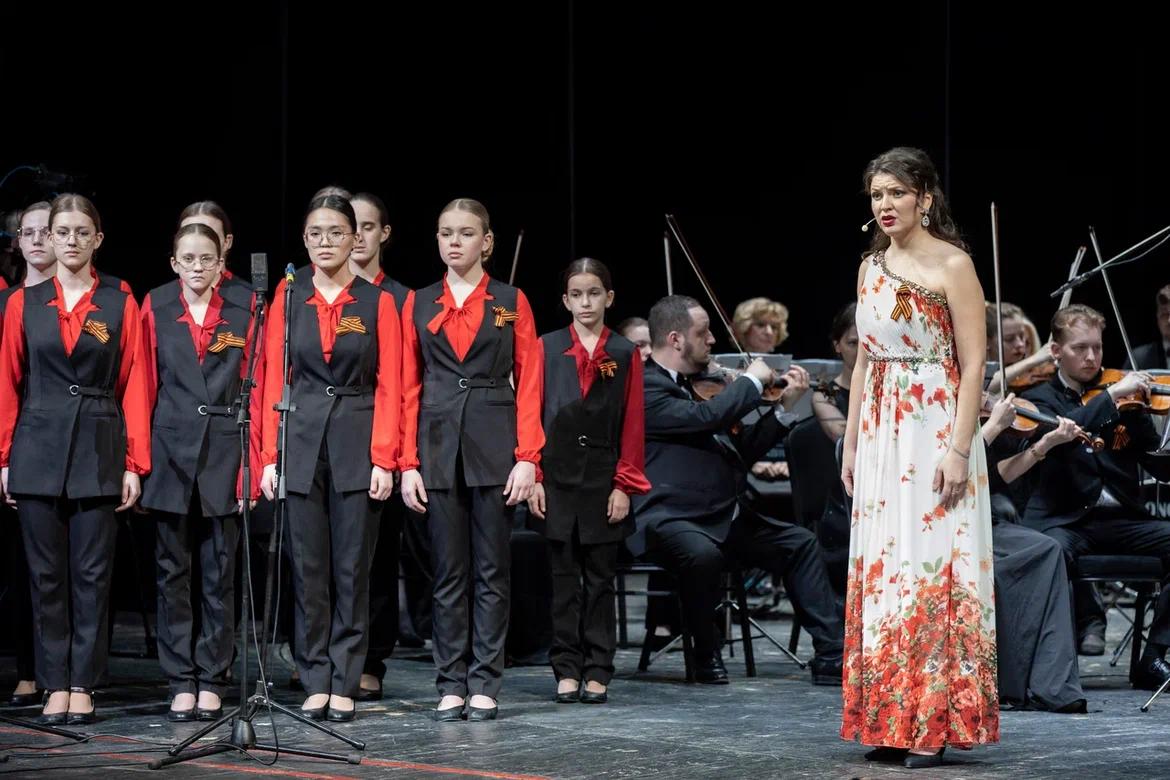 Открыла концерт «Священная война» Александрова — одна из самых известных и знаковых песен ВОВ, ставшая гимном защиты Отечества. В самых тяжелых боях она помогала выдержать вражеские атаки и не потерять крепость духа. Знаковое произведение исполнил сводный хор Санкт-Петербургского Пансиона воспитанниц Министерства обороны РФ — юных девушек в возрасте 13-15 лет. Еще в 1764 году, по Указу Екатерины II, в Петербурге был основан Институт благородных девиц, призванный «дать государству образованных женщин, хороших матерей, полезных членов семьи и общества» с изящными манерами и высоким уровнем культуры. Пансион воспитанниц Министерства обороны РФ стал преемником этих традиций в XXI веке. Участницы хора не понаслышке знают о том, что такое война. В Пансион принимают дочерей военнослужащих отдаленных гарнизонов, детей участников боевых действий, награжденных государственными наградами и погибших при выполнении воинского долга. Это молодое поколение истинных патриотов, которые со знанием и любовью относятся к культурному наследию своей страны и бережно хранят историческую память о Великой Отечественной войне.