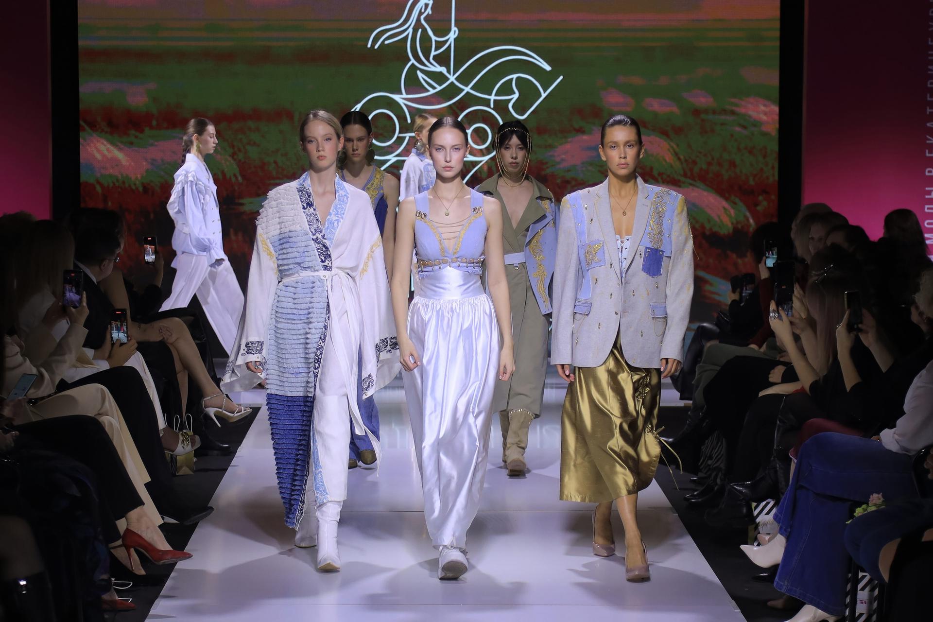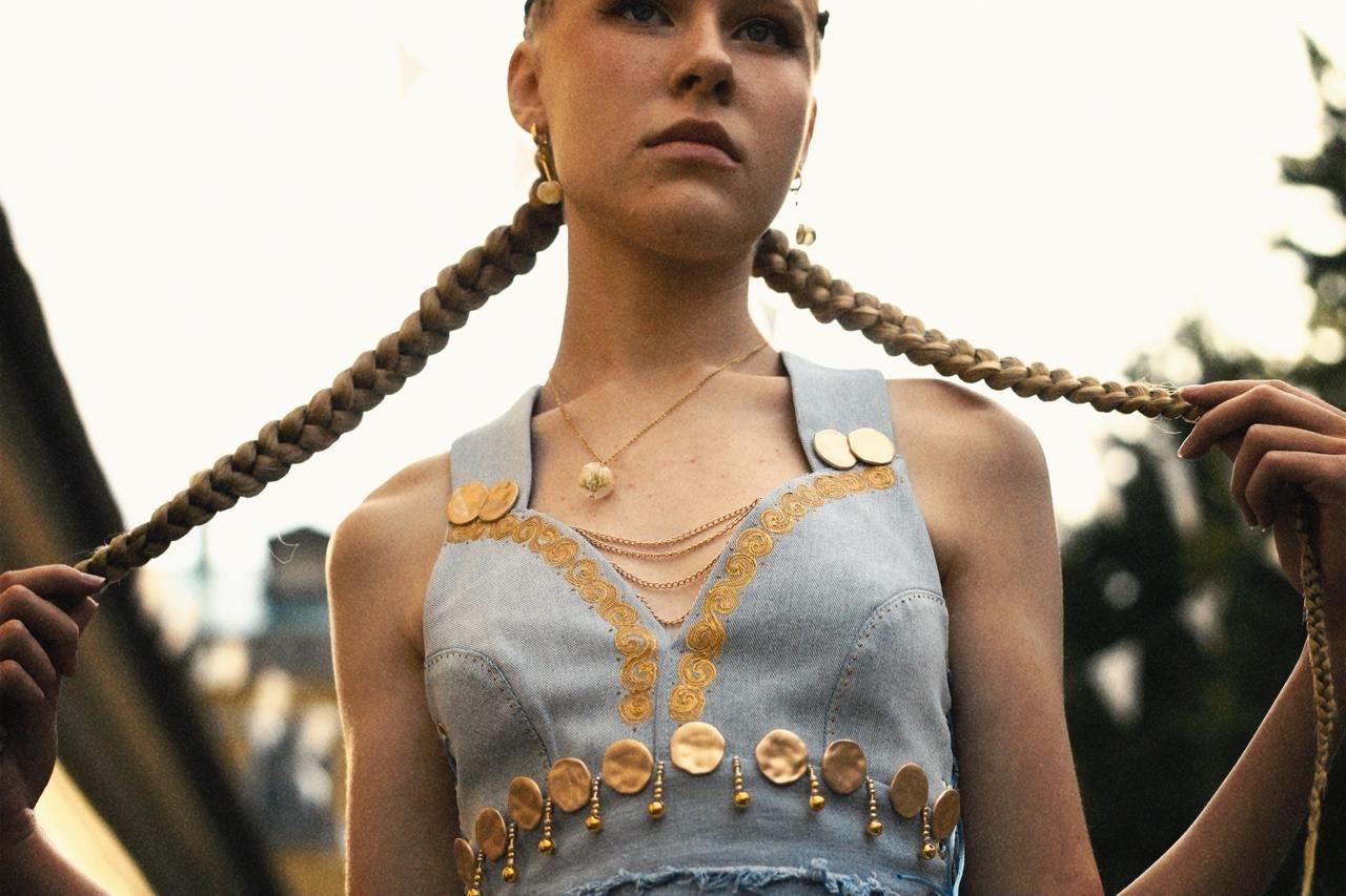 Коллекция получилась действительно уникальной. Авторы добавили к джинсовой ткани другие натуральные материалы, а также использовали особенности культурной идентичности Оренбуржья. Традиционно Оренбург ассоциируется у нас с пуховыми платками. Но мало кто знает, что Оренбуржье славится природой, в особенности степями, и сарматским золотом. Ксения с командой задались целью расширить ассоциативный ряд новыми образами и сделать коллекцию на основе сарматской культуры.