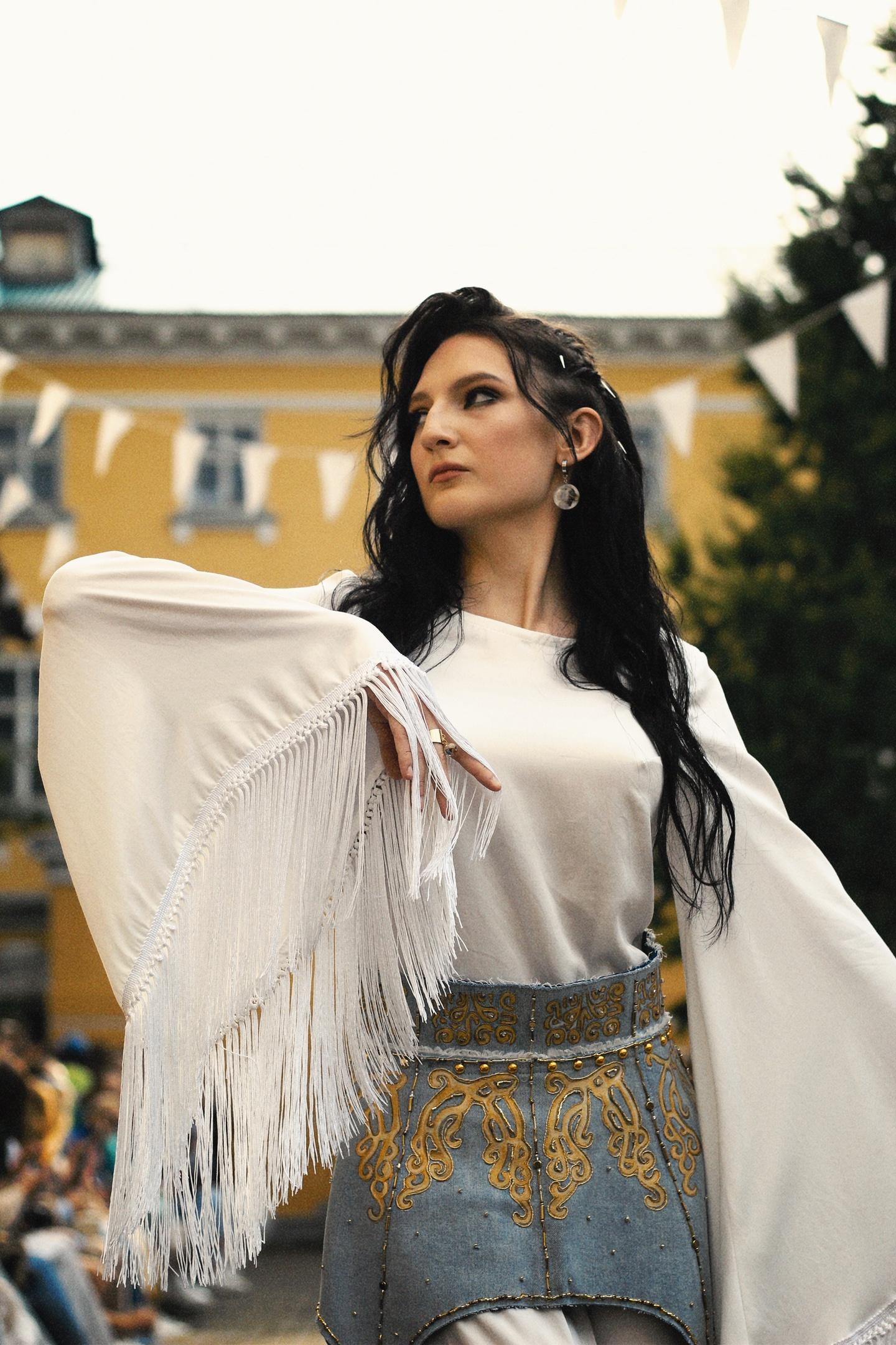 Племена Сарматов характеризовались тем, что в них главенствовали женщины. Авторы объединили в своих работах те самые силу и женственность: «Своей коллекцией одежды мы хотели показать, как можно не только креативно преобразить старые вещи, но и в том числе донести исторический смысл», – отмечает Ксения.