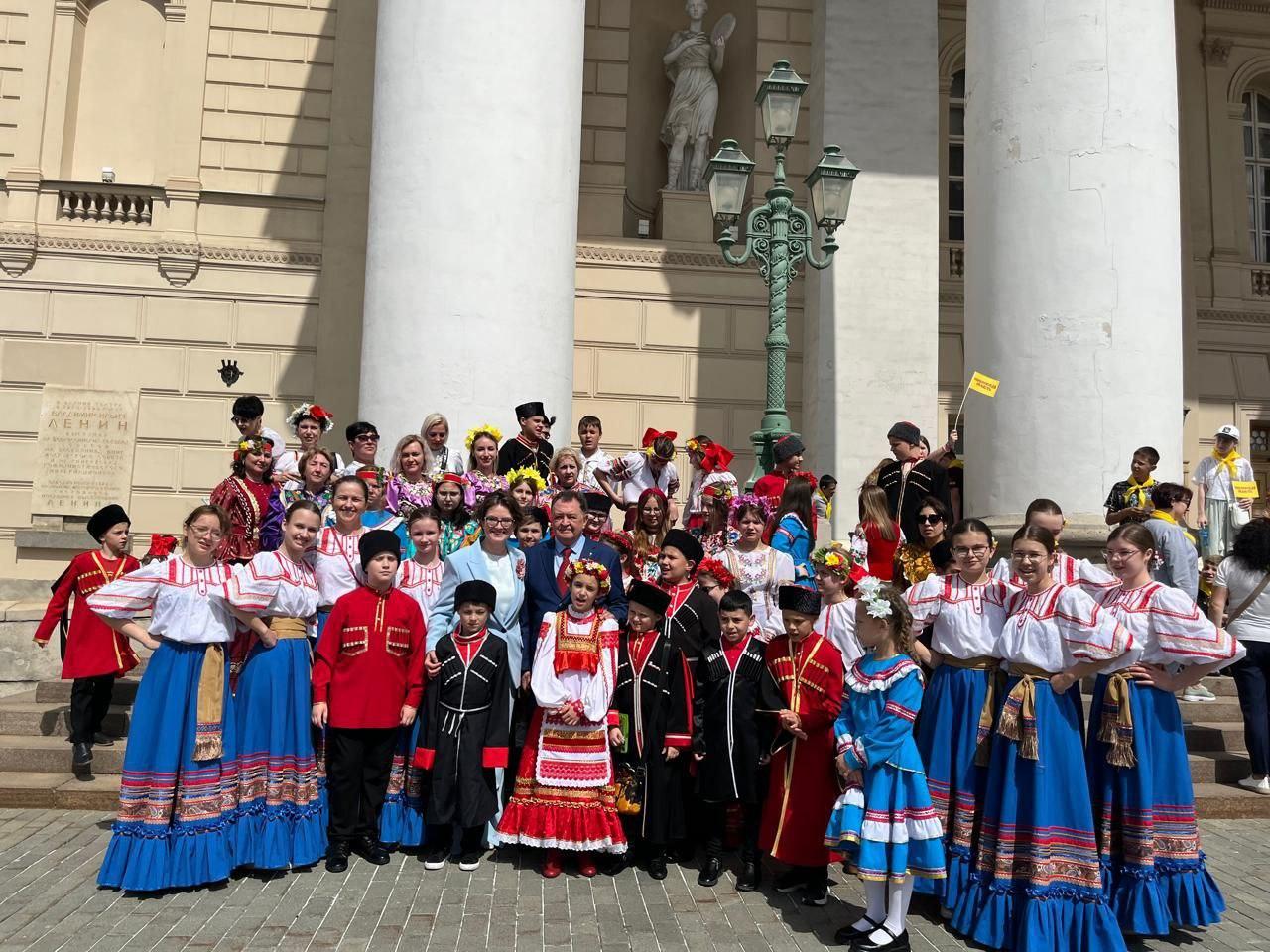 В Международный день защиты детей, 1 июня, Российский детский фонд провёл свой ежегодный, уже 38-й по счёту, культурно-просветительский фестиваль-конкурс «Наследники героев». В этом году мероприятие прошло при поддержке Президентского фонда культурных инициатив. На торжестве в Москве собрались 8 тысяч детей со всей страны: от Карелии и Краснодарского края до Хабаровска и Чукотки, а также из Беларуси, Киргизии и других дружественных стран. Среди гостей были дети из многодетных семей, воспитанники центров семейного устройства, а также ребята, оказавшиеся в сложной жизненной ситуации. Особое внимание было уделено детям, чьи родители участвуют в СВО или погибли при исполнении воинского долга.