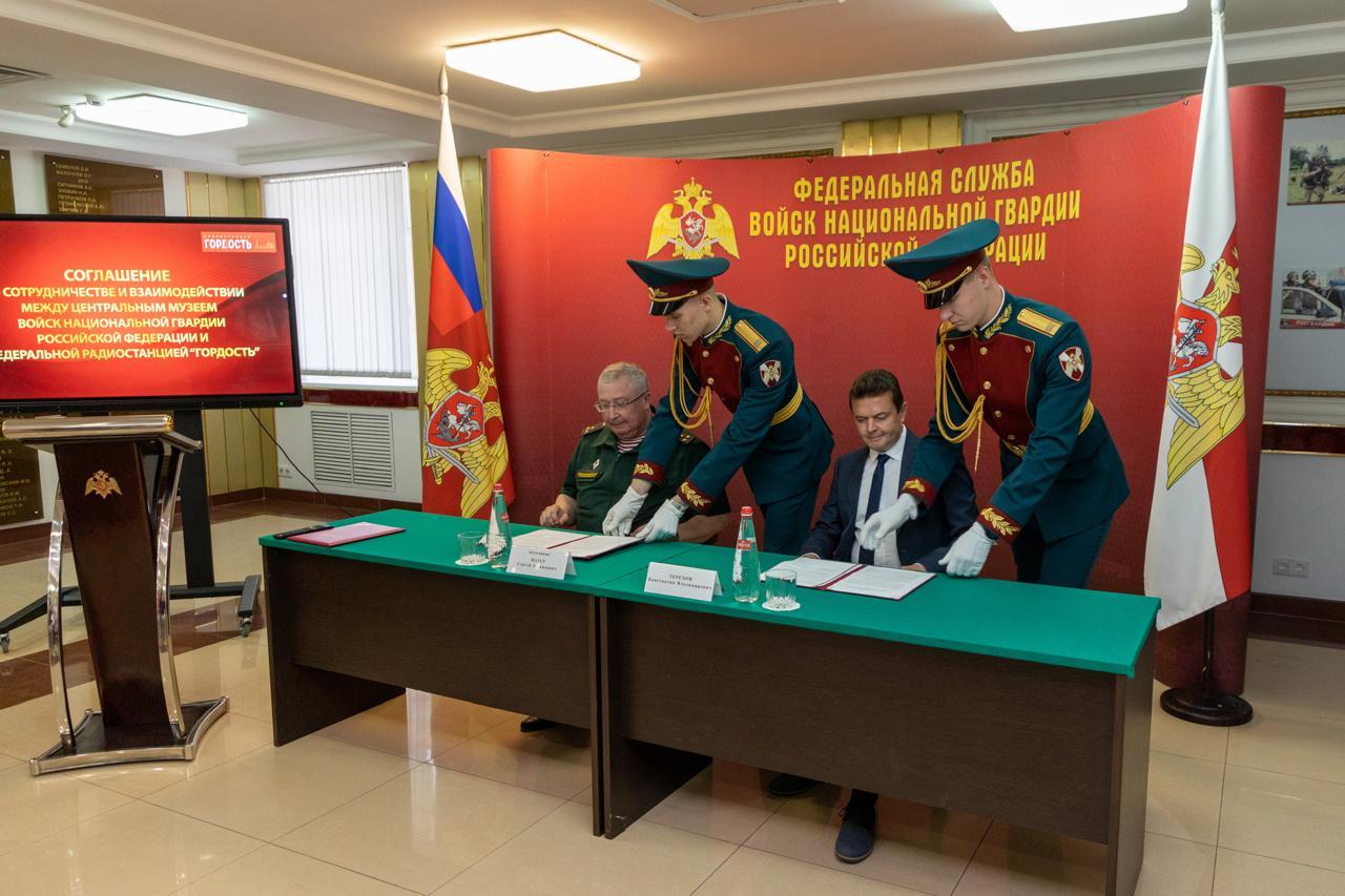 Федеральная патриотическая радиостанция «Радио «Гордость» и Центральный музей войск национальной гвардии РФ заключили Соглашение о сотрудничестве и взаимодействии. Подписи под документом поставили программный директор, главный редактор радиостанции Константин Терехов и начальник музея, заслуженный работник культуры РФ, полковник Сергей Мазур.