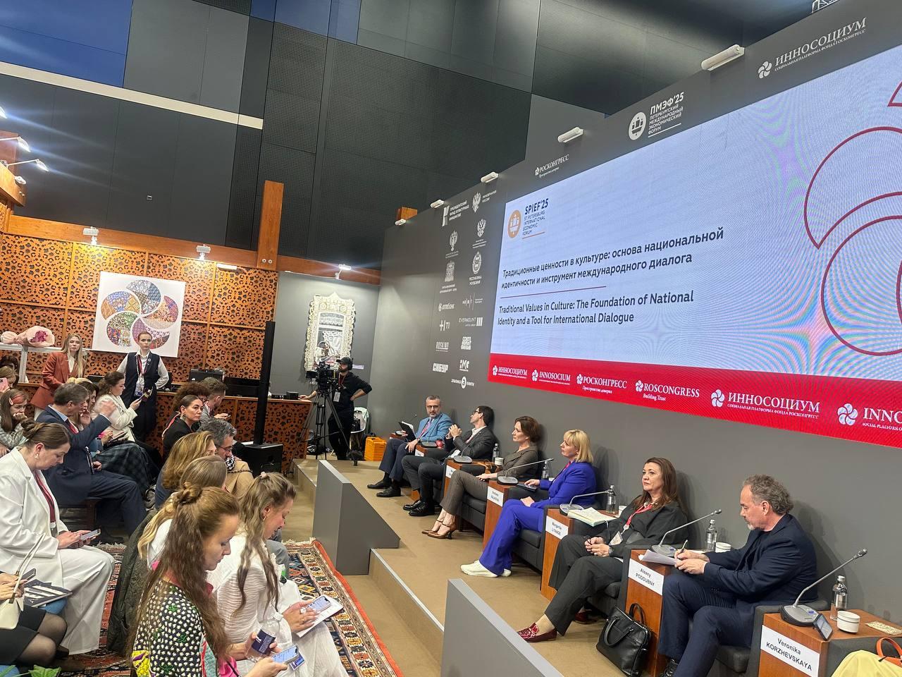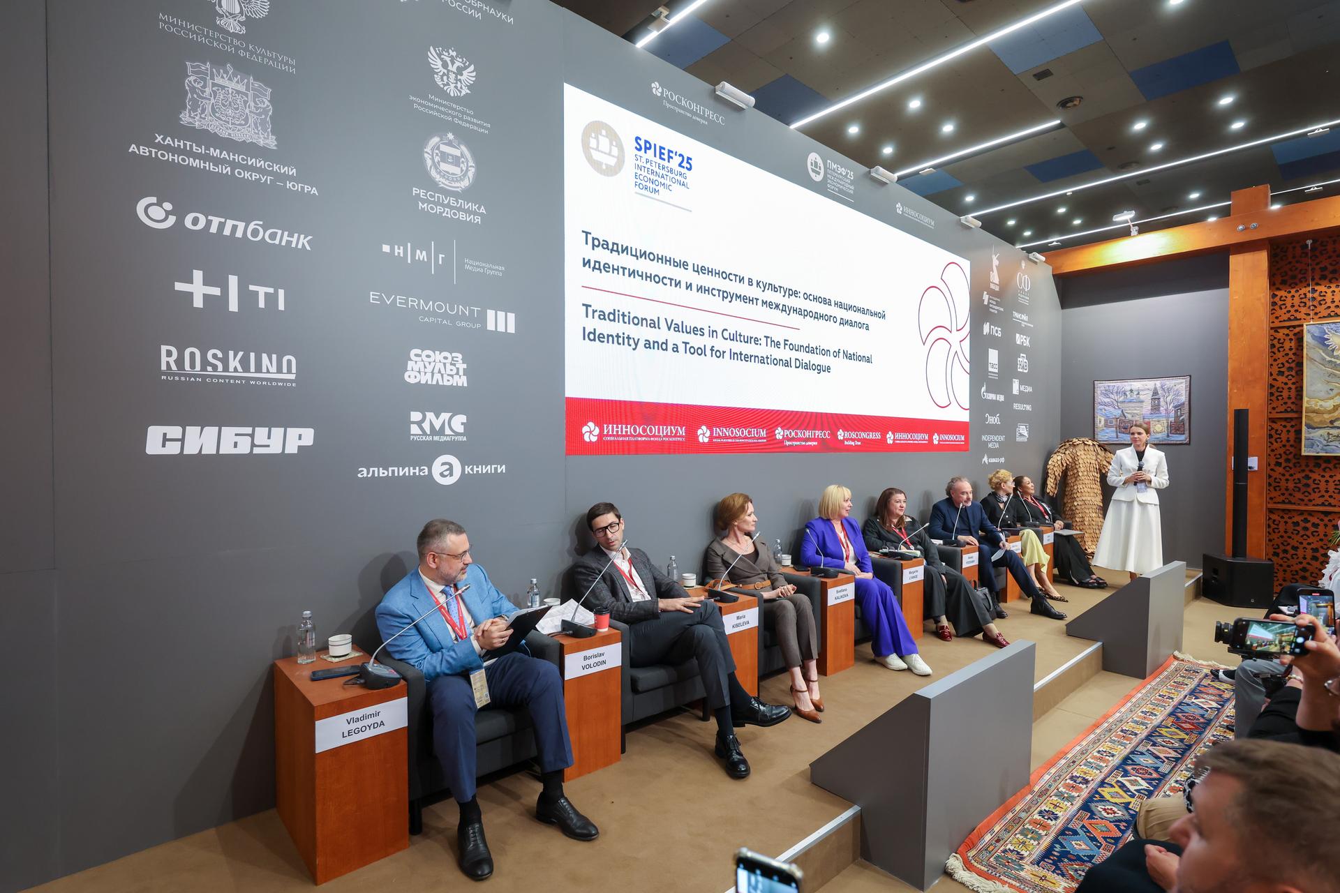 Сегодня, 19 июня, на полях Петербургского международного экономического форума, который проходит с 18 по 21 июня в Северной столице, состоялась дискуссия «Традиционные ценности в культуре: основа национальной идентичности и инструмент международного диалога», организованная Президентским фондом культурных инициатив. Победители грантовых конкурсов ПФКИ обсудили, как традиционные смыслы находят отражение в кино, театре, музыке, гастрономии и других сферах творчества. Затронули также вопросы поддержки таких инициатив. Модератором встречи стал председатель Синодального отдела по взаимоотношениям церкви с обществом и средствами массовой информации Русской православной церкви Владимир Легойда.