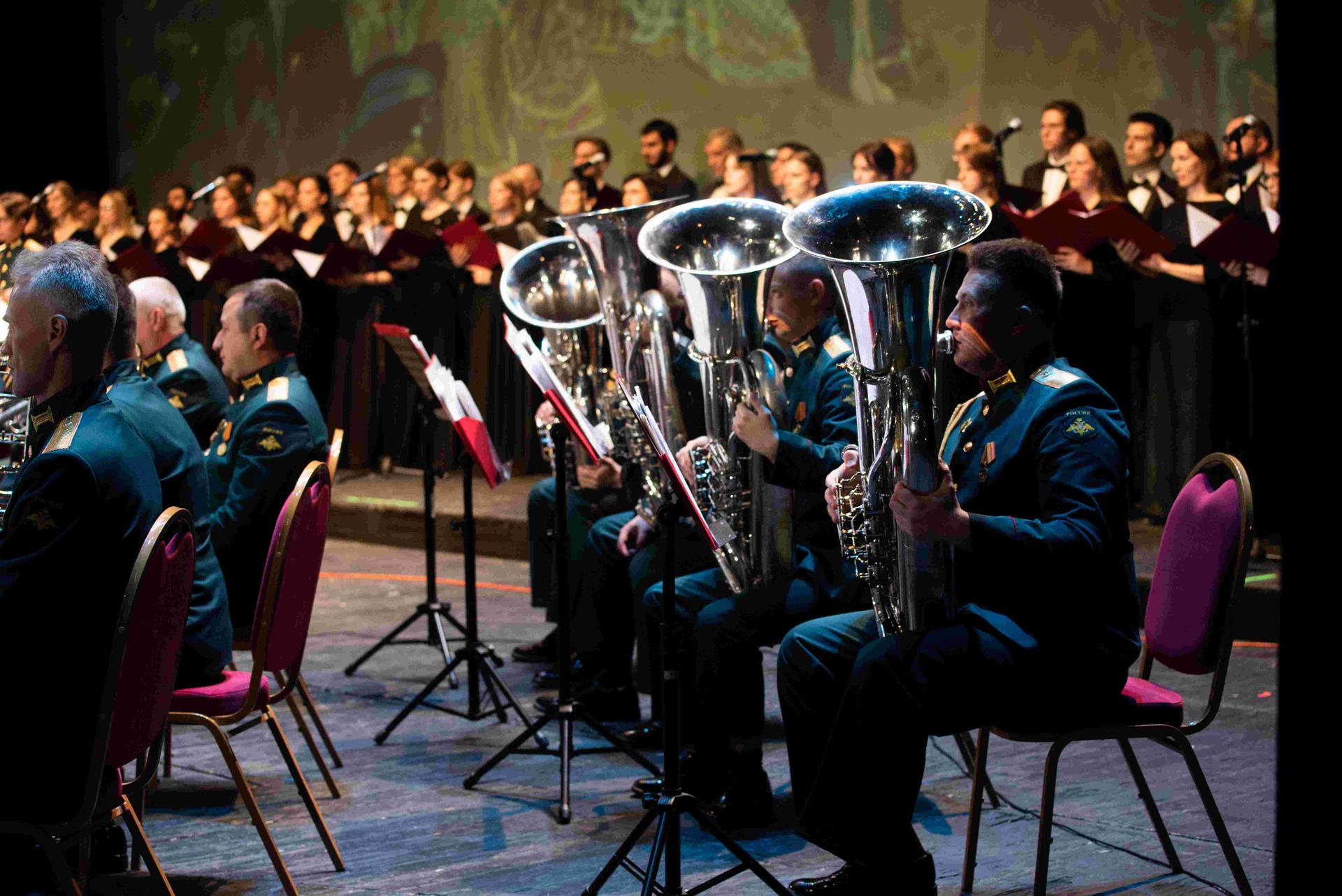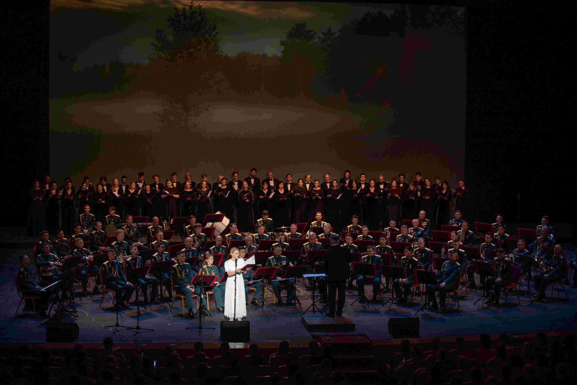 На прославленную сцену театра поднялись Центральный военный оркестр Министерства обороны РФ под управлением начальника оркестра заслуженного артиста России полковника Сергея Дурыгина и Московский Синодальный хор под управлением художественного руководителя фестиваля заслуженного артиста России Алексея Пузакова. Композитор и исполнитель народных песен Анастасия Кузнецова представила столичной публике премьеру своего произведения «Давайте будем жизнью дорожить». В концерте приняли участие солисты молодёжной программы Фонда Владимира Маторина Анастасия Булавкина, Асланбек Агкацев, Жанна Худавердян, Владислав Голубев, а также Фёдор Рытиков, Александр Свищёв, Светлана Ильина и Алёна Кузнечикова. Ведущим вечера выступил телеведущий Александр Крузе.