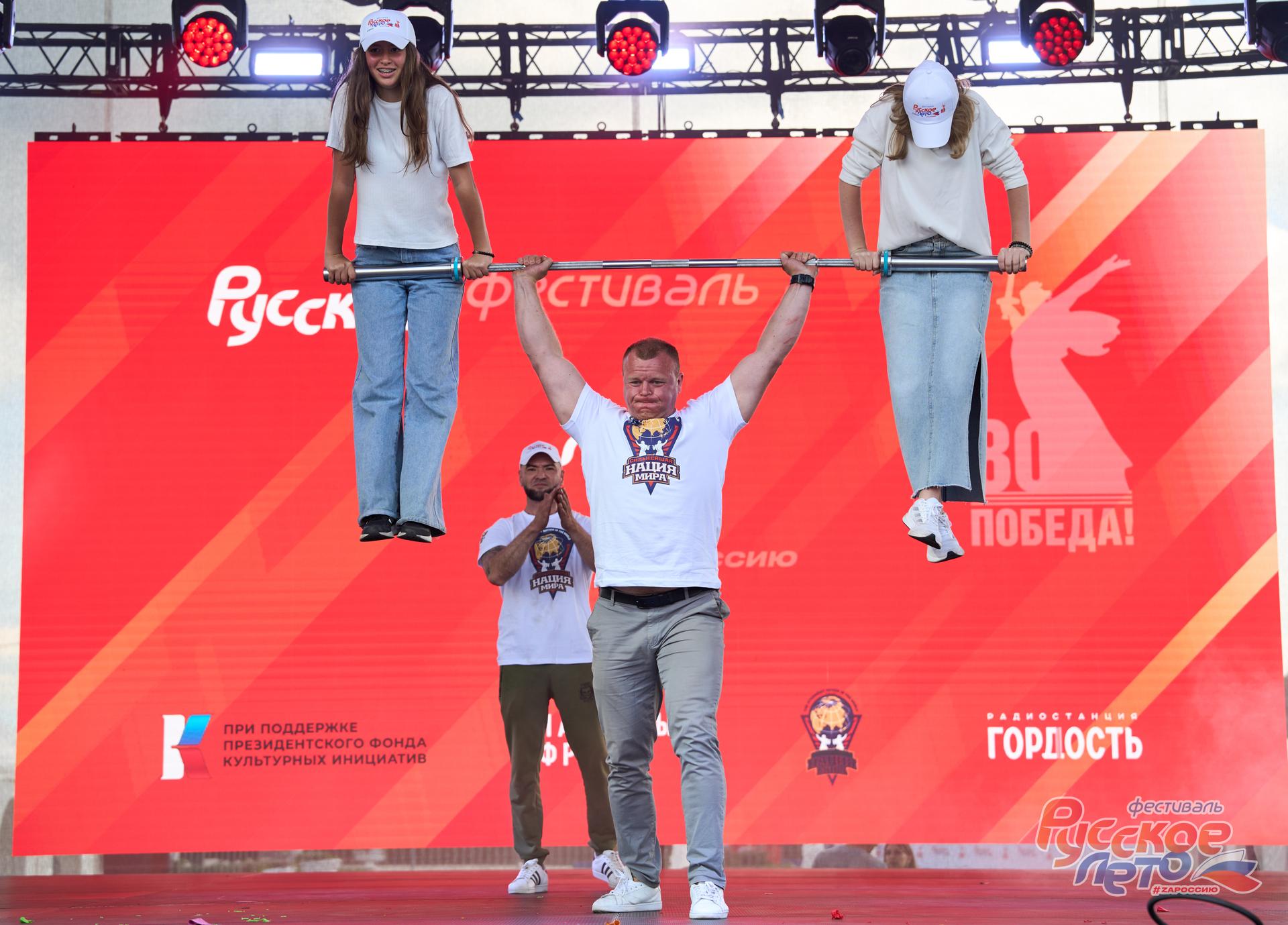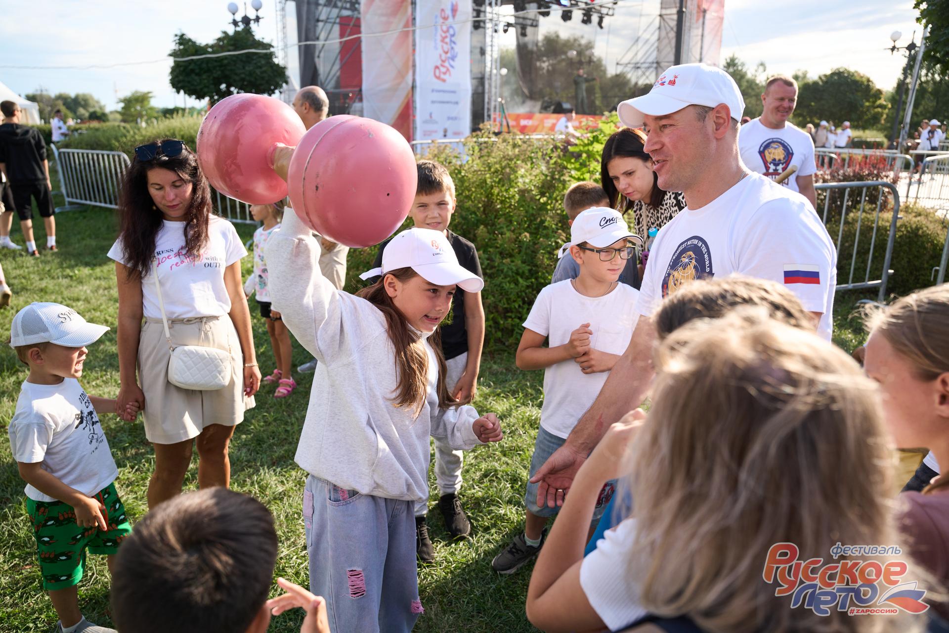 Спортивная зона Фестиваля «Русское лето. ZaРоссию», организованная Международным богатырским движением «Сильнейшая нация мира», стала местом притяжения. Все желающие смогли познакомиться с фиджитал-спортом, сыграть в волейбол и керлинг. Огромный интерес вызвало командное спортивно-интеллектуальное состязание «Малыши-крепыши» с эстафетой, подъемом гигантской гантели, разрывом медицинских грелок и другими зажигательными испытаниями.