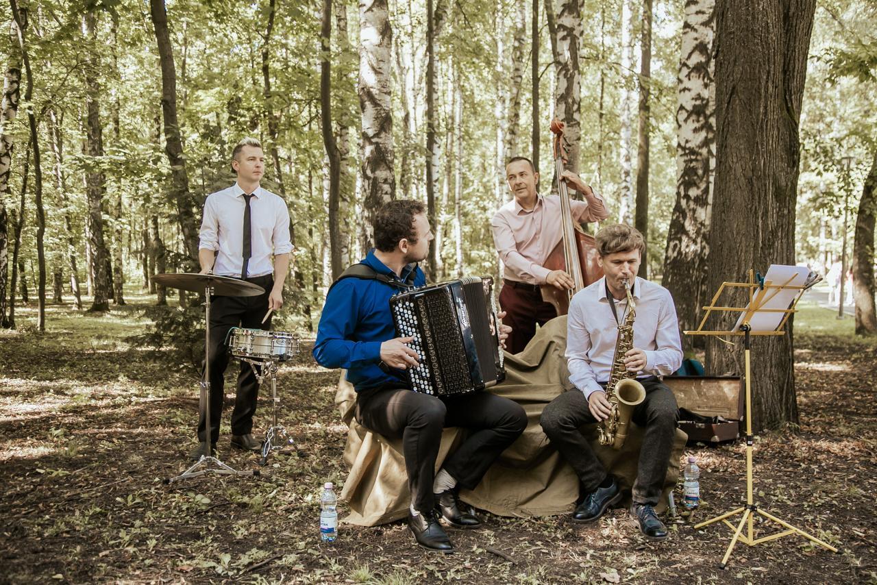 16 августа в день города Нижнего Новгорода в парке «Швейцария» состоялся зрелищный проект джазового фестиваля «Осень в Швейцарии. Джаз Победы» «ДЖАЗ НА ФРОНТЕ». В перелеске за центральной площадью прошла военно-патриотическая реконструкция, которая продемонстрировала фрагмент боя, момент привала и выступление перед бойцами фронтовых музыкантов: джазового квартета под управлением Алексея Молева и дуэта вокалистки Елены Курбановой и баяниста Алексея Пушкарева. Артисты исполнили композиции и песни, которые звучали на фронтах Великой Отечественной войны.