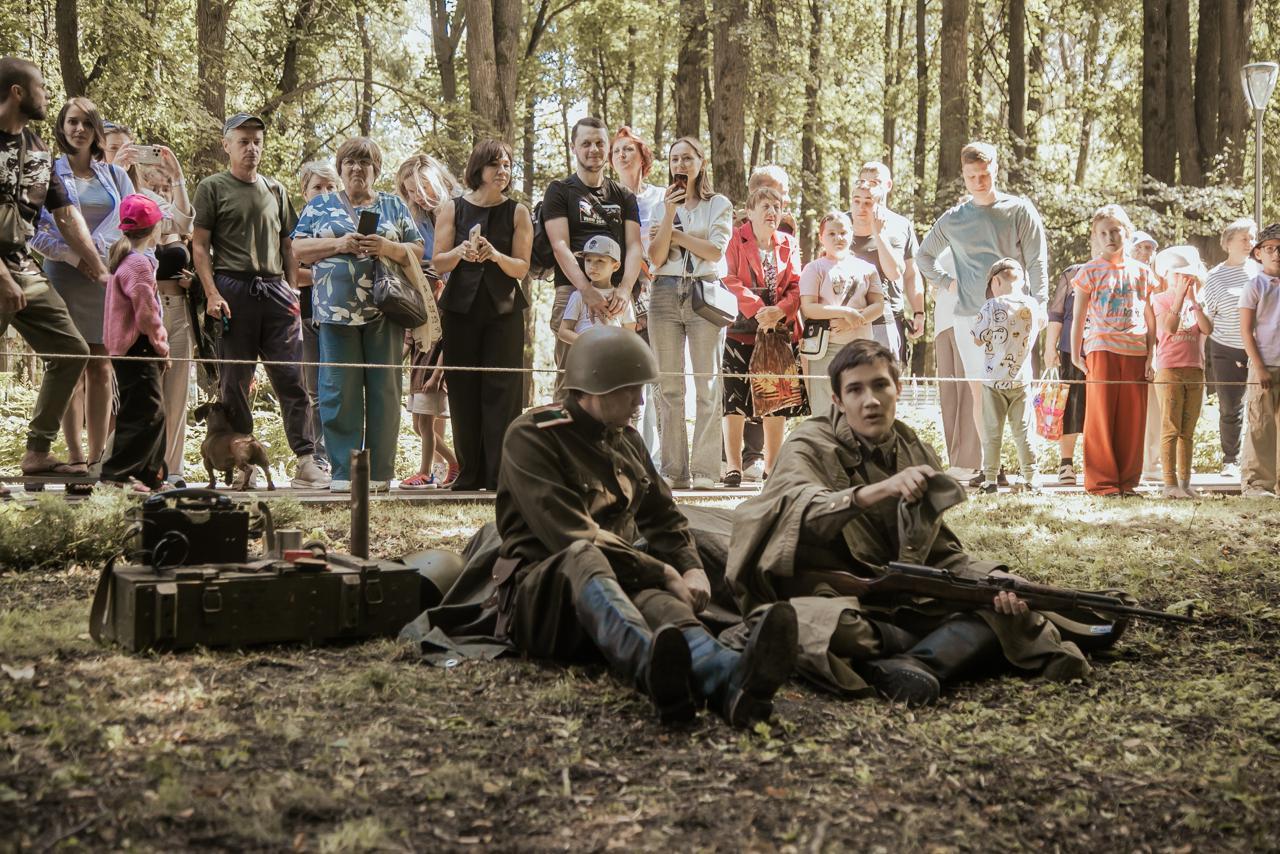 Участники военной реконструкции, члены «Нижегородского музея холодной войны», достоверно – начиная от формы, оружия, предметов солдатского быта и до реконструкции боя – передали атмосферу происходящего в режиме реального времени. Зрители разных возрастов ощутили близость сражения, слышали громкие звуки стрельбы и взрывов, и на контрасте – теплоту живого концерта, песен, которые пели хором. По мнению организаторов, этот проект стал важной частью большой программы парка в День города, которая назвалась «Герои среди нас» и была посвящена самым важным моментам истории города и страны. «Джаз на фронте» привлек большое число гостей праздника, передал важную веху истории Великой отечественной войны, рассказал о роли джазовых музыкантов, повысил уровень национально-патриотических ценностей и знаний у детей и молодежи.