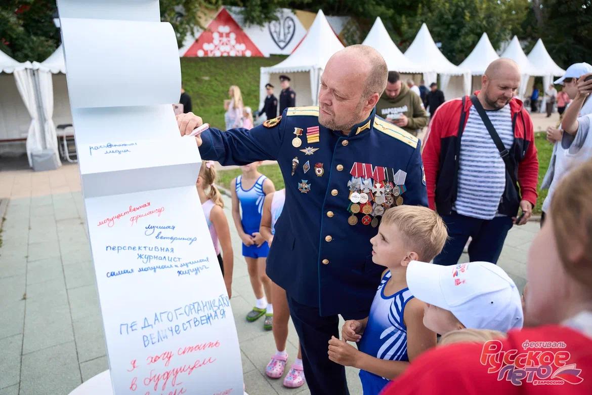 12 тысяч жителей и гостей Рязани посетили Фестиваль «Русское лето. ZaРоссию», который прошел 5 сентября в рамках VIII Международного форума древних городов «Память. Традиции. Будущее». На Лыбедском бульваре дети, взрослые, молодежь слушали самобытные песни певицы Влады Miravi и группы «ПослеZавтра». С энтузиазмом участвовали в спортивных соревнованиях, пробовали себя в творческих мастер-классах, собирали средства на нужды СВО. В интерактивной зоне «Мечтай в России» мальчишки и девчонки общались с ветераном специальной военной операции и делились мечтами о будущем родной страны. Проект реализуется при поддержке Президентского фонда культурных инициатив. Подробная программа — на сайте русскоелето.рф.