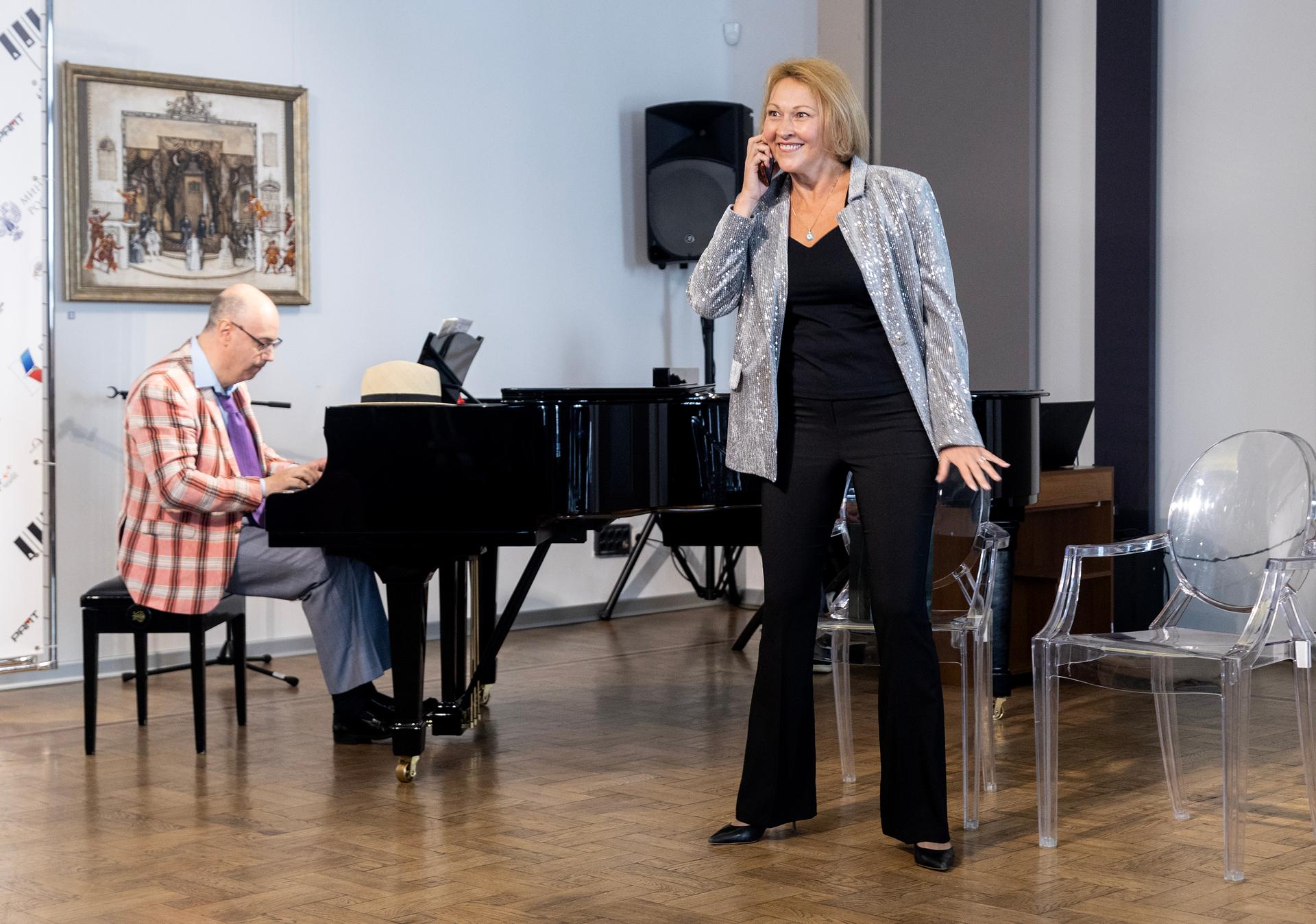 Прекрасным подарком для гостей пресс-конференции стала мини-опера Джан Карло Менотти «Телефон». Это камерное произведение исполнили солисты театра «Геликон-опера» Елена Семенова (сопрано) и Михаил Егиазарьян (баритон, фортепиано).
