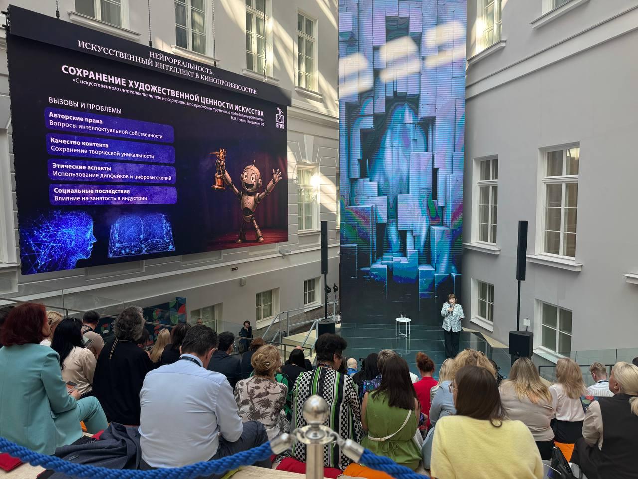 На Международном форуме объединенных культур, который проходит в Санкт-Петербурге, состоялась презентация Всероссийского государственного института кинематографии (ВГИК) на тему «Нейрореальность. Искусственный интеллект в кинопроизводстве», организованная Президентским фондом культурных инициатив. Спикером сессии выступила директор института анимации и цифровых технологий, декан факультета анимации и мультимедиа ВГИК Елена Яременко.