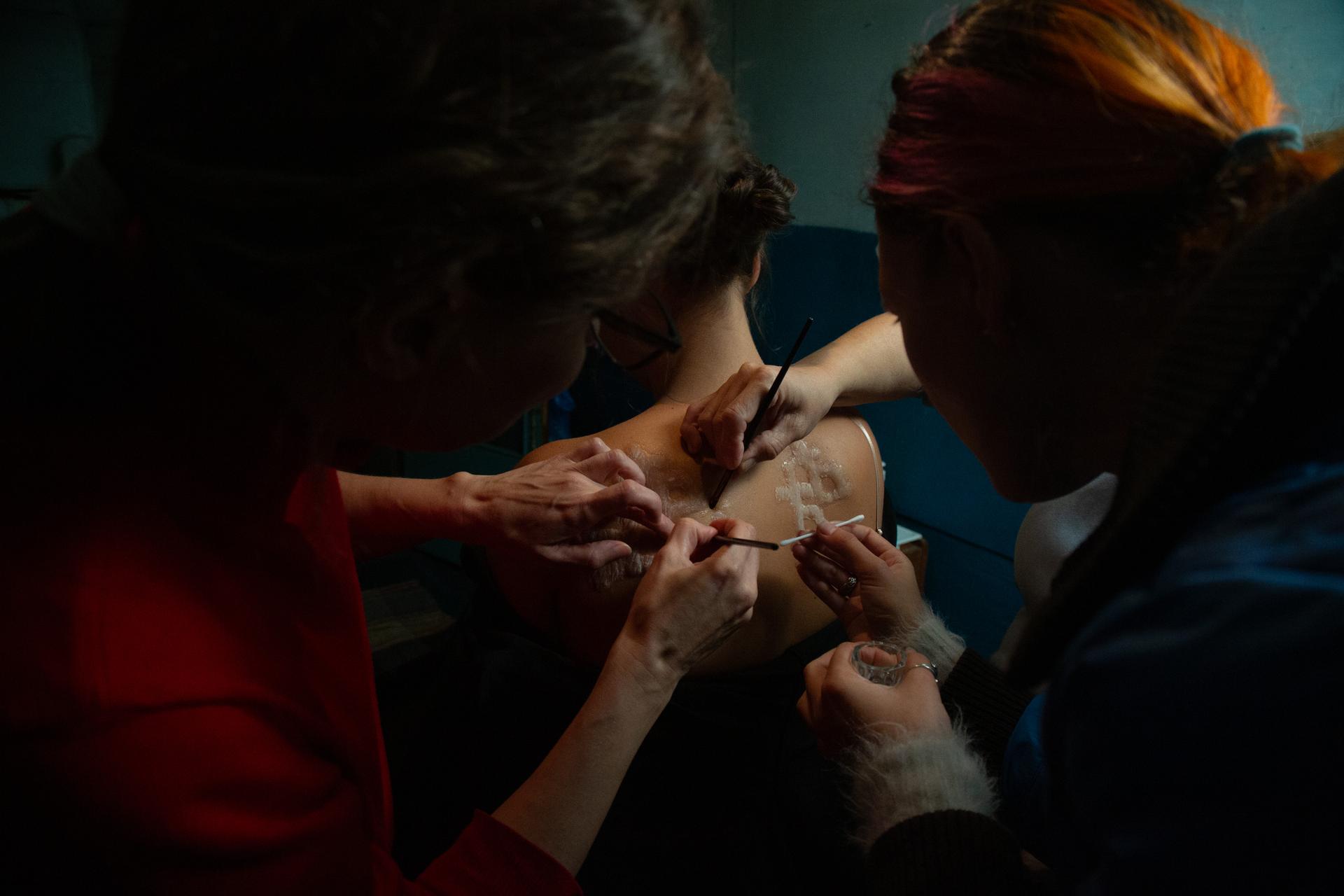 — Основной состав — проверенные люди, с кем мы уже делали не один проект: продюсерский, сценарный, художественный и операторский департаменты, плюс звук, грим, VFX-специалист. Под узкие задачи точечно подключали специалистов: кинолога для работы с «волчицей» и пиротехника (безопасность и тесты). Параллельно взяли стажёров — быстро подключились, набрали практику, часть осталась в команде.