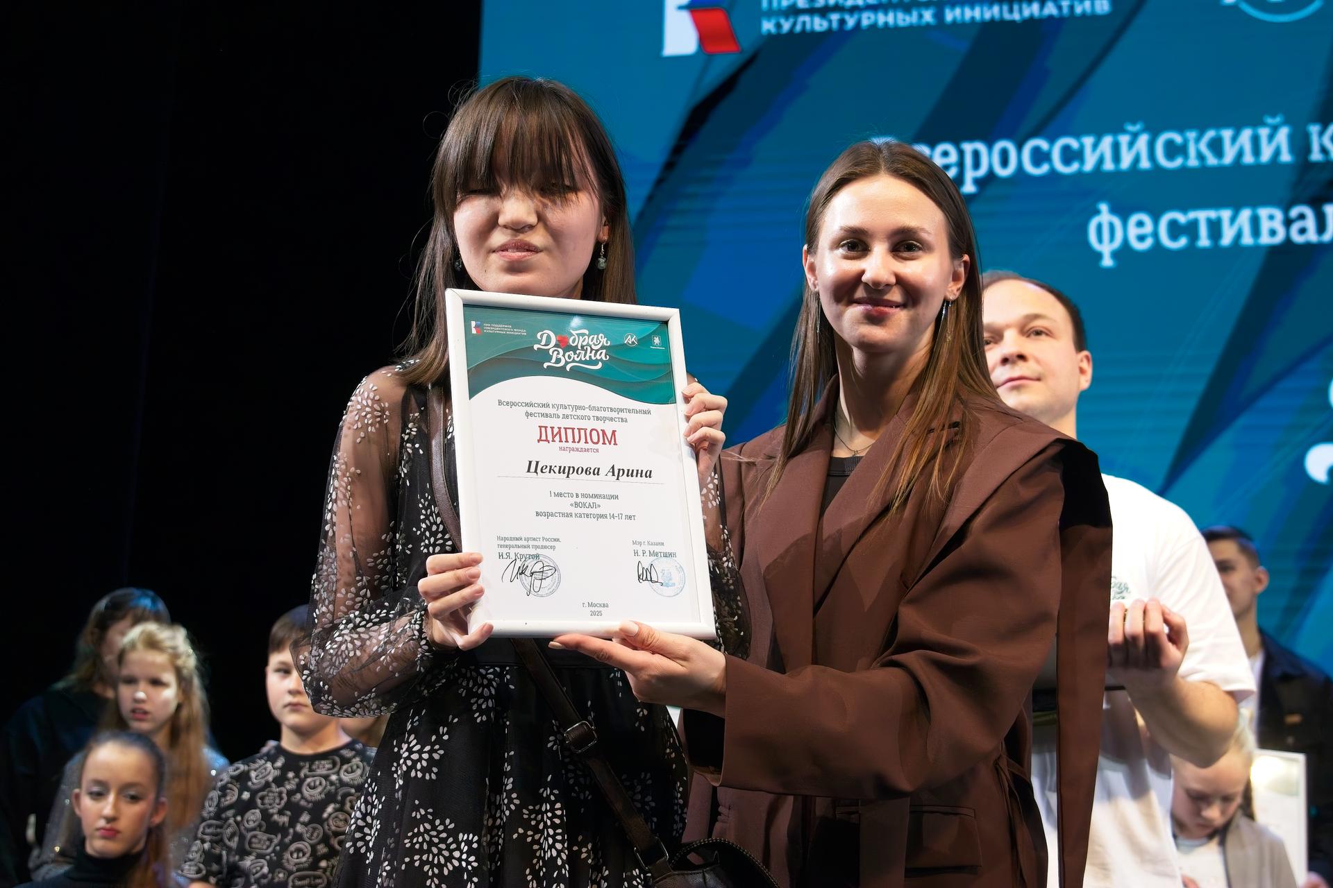 Свою историю на фестивале рассказала и Арина Цекирова из Москвы, победительница в номинации «Вокал» (14-17 лет). Юная артистка призналась, что участие в конкурсе стало для неё шагом к мечте о будущем. «Я давно хотела попасть на «Добрую волну» и наконец-то смогла! В будущем я мечтаю стать звукорежиссёром. Для этого мне нужно оборудование — микрофон, звуковая карта, хороший компьютер, чтобы заниматься записью и аранжировкой. Если получится победить в финале конкурса в Казани, я потрачу выигрыш именно на это».