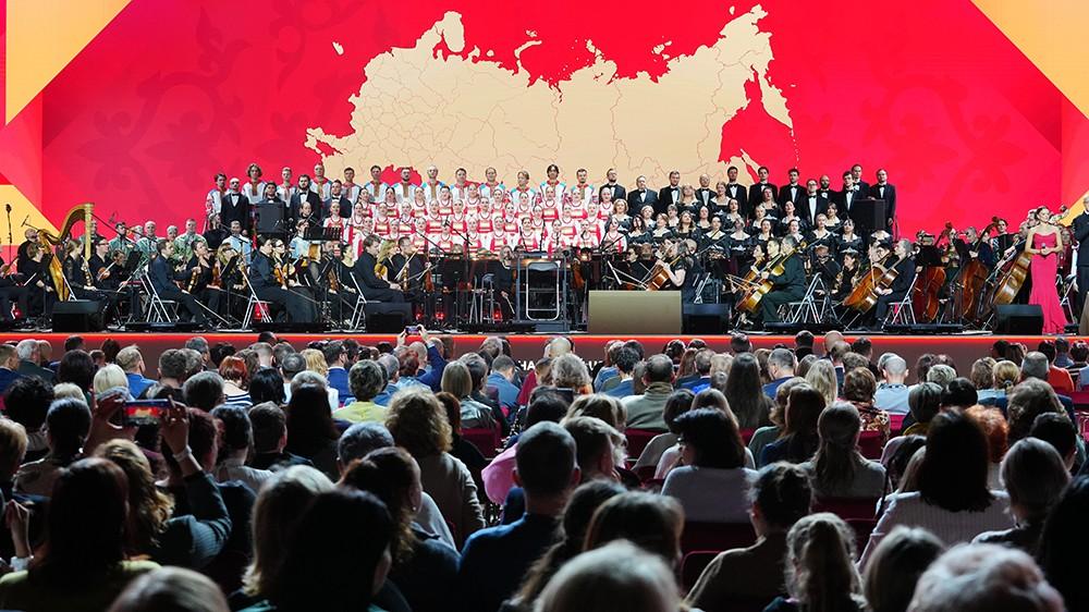 Впервые в истории страны Гимн Российской Федерации исполнил сводный состав хоров и оркестр инструментов народов России под управлением дирижера, народного артиста СССР, Героя труда РФ Юрия Башмета. Идейной основой и символом фестиваля стала вышитая карта страны, рожденная в Чувашии. Итоговое мероприятие объединило композиторов, которые создали для проекта музыкальные «визитные карточки» своих регионов. Со сцены концертного зала прозвучали мелодии из всех Федеральных округов, отдельно были представлены Москва, Санкт-Петербург, ДНР и ЛНР. Произведения современных авторов прозвучали в исполнении Государственного симфонического оркестра «Новая Россия» под руководством Юрия Башмета.