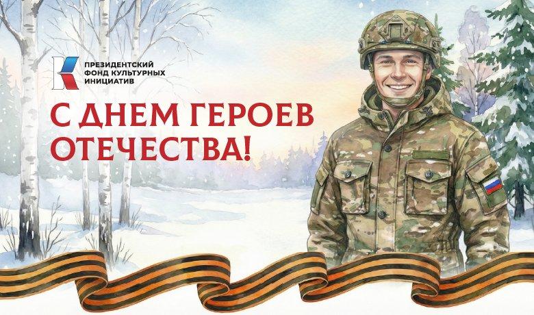 День Героев Отечества – особая дата в календаре России. Сегодня мы чествуем тех, кто защищал и защищает Родину, отдаёт себя без остатка служению людям и совершает поступки, которые становятся примером для всей страны. В этот день вспоминаем подвиги прошлого и говорим спасибо героям нашего времени на фронте и в тылу, в науке и искусстве. Пусть их истории, переданные через искусство, кино, театр и музыку, всегда будут для нас источником силы, правды и вдохновения. При поддержке Президентского фонда культурных инициатив такие проекты реализуются по всей стране.