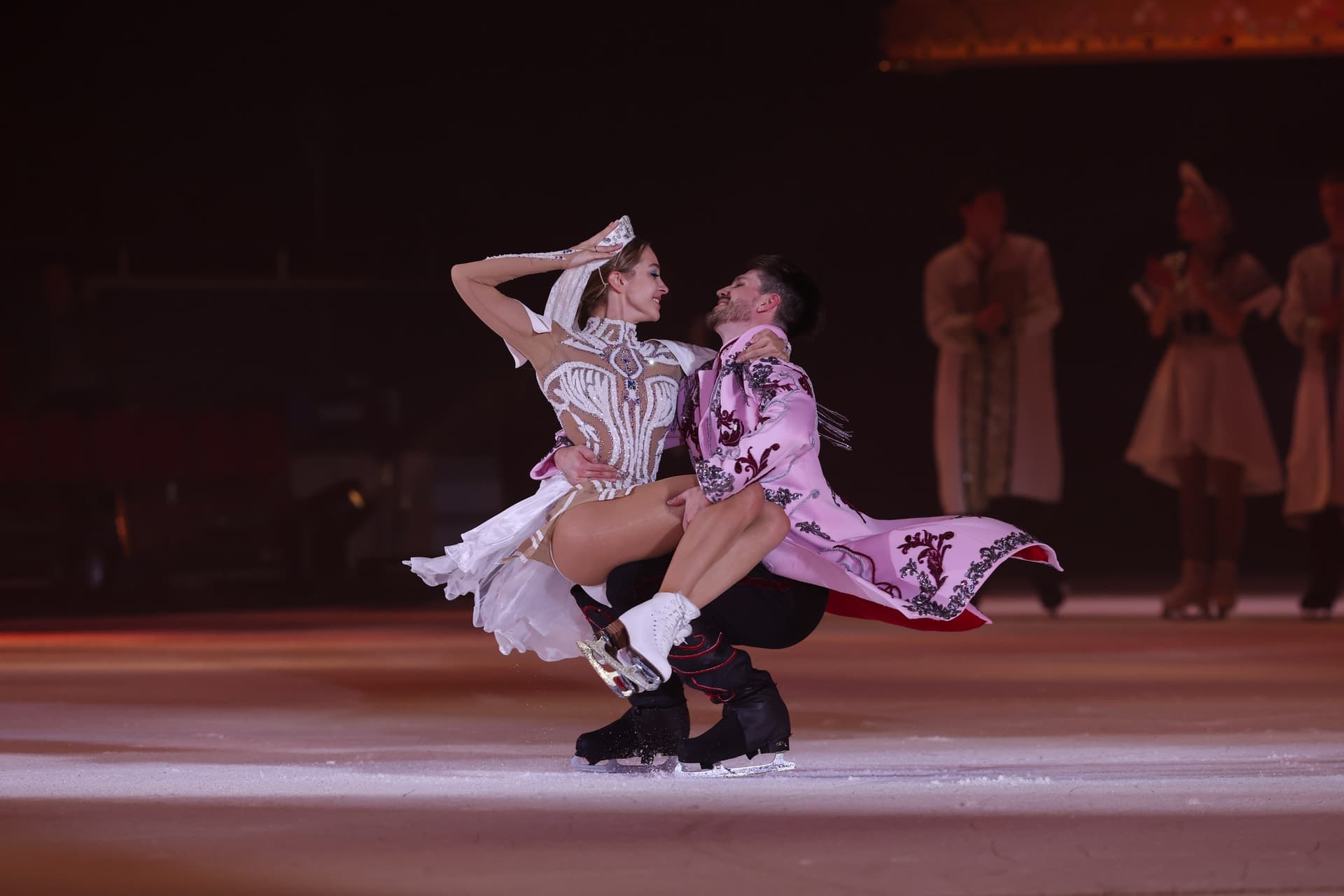 В главных ролях новогодней премьеры в Петербурге выступили звёзды мирового фигурного катания. Роль кузнеца Вакулы исполнил чемпион Европы Иван Букин. Неотразимую Оксану сыграла чемпионка Европы Александра Степанова. Императрицей предстала на льду олимпийская чемпионка Анастасия Мишина. А главным антагонистом, харизматичным Чертом, выступил чемпион мира Артур Гачинский. Премьера ледового шоу «Вечера на Хуторе» в Санкт-Петербурге прошла с аншлагом.
