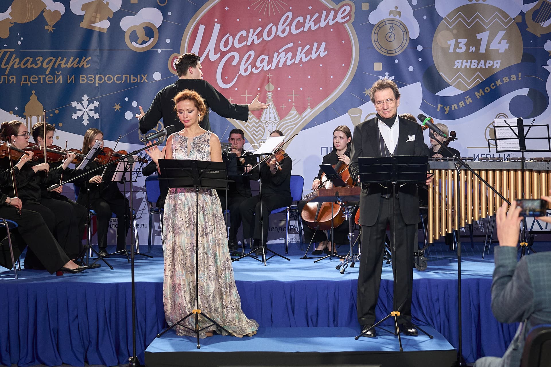 Показ концертной версии проекта «Семьи небесные» прошел 13 января в пространстве Амбер Плаза в Москве. Он вошёл в программу фестиваля «Звезда Рождества» и состоялся в рамках рождественского праздника «Московские Святки». Этим событием был завершён годовой этап реализации масштабного культурного проекта, объединившего кино, музыку, анимацию и иконописное наследие в уникальном художественном формате.