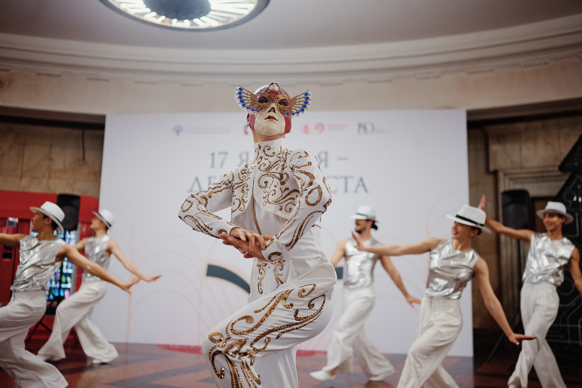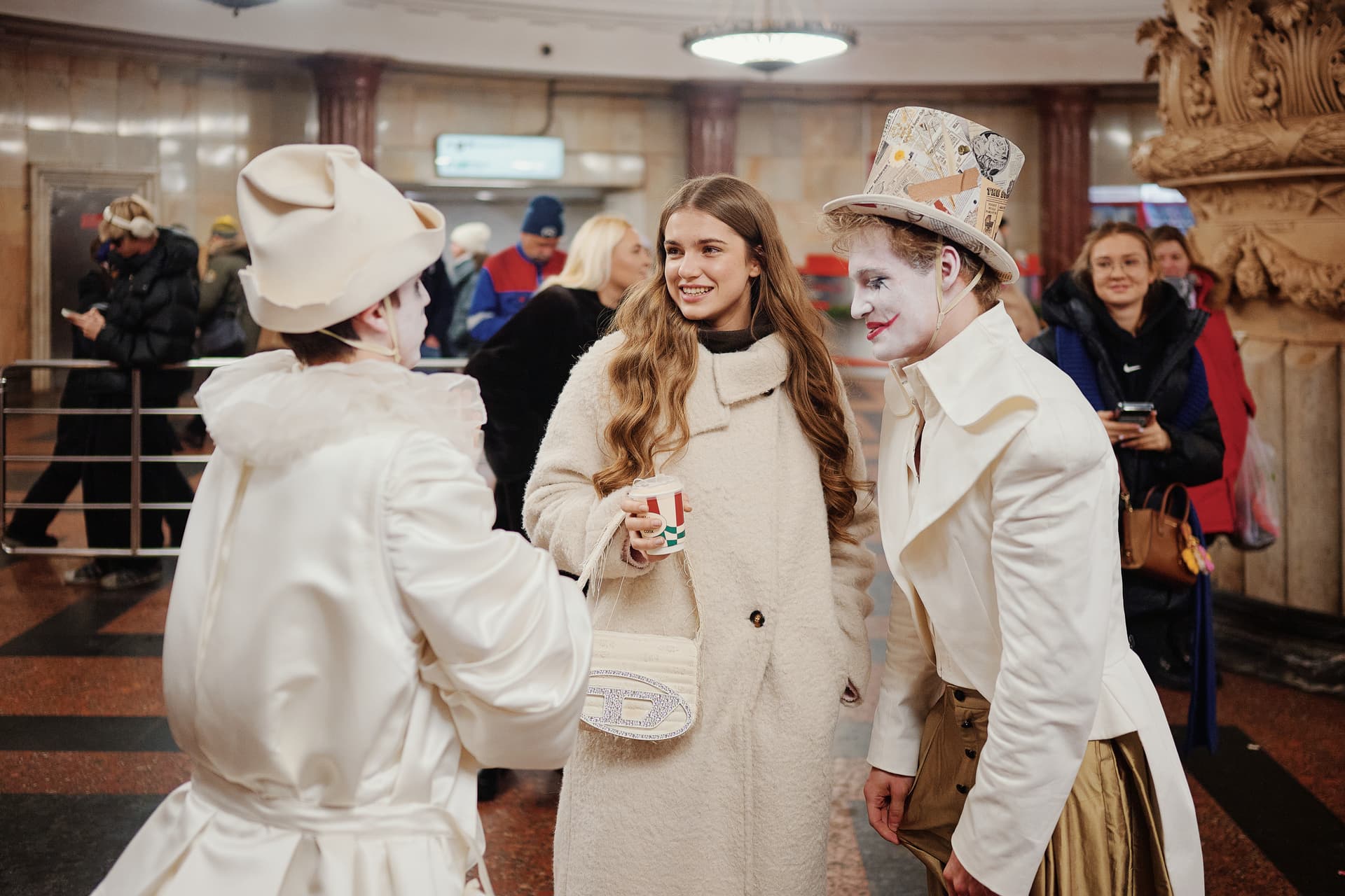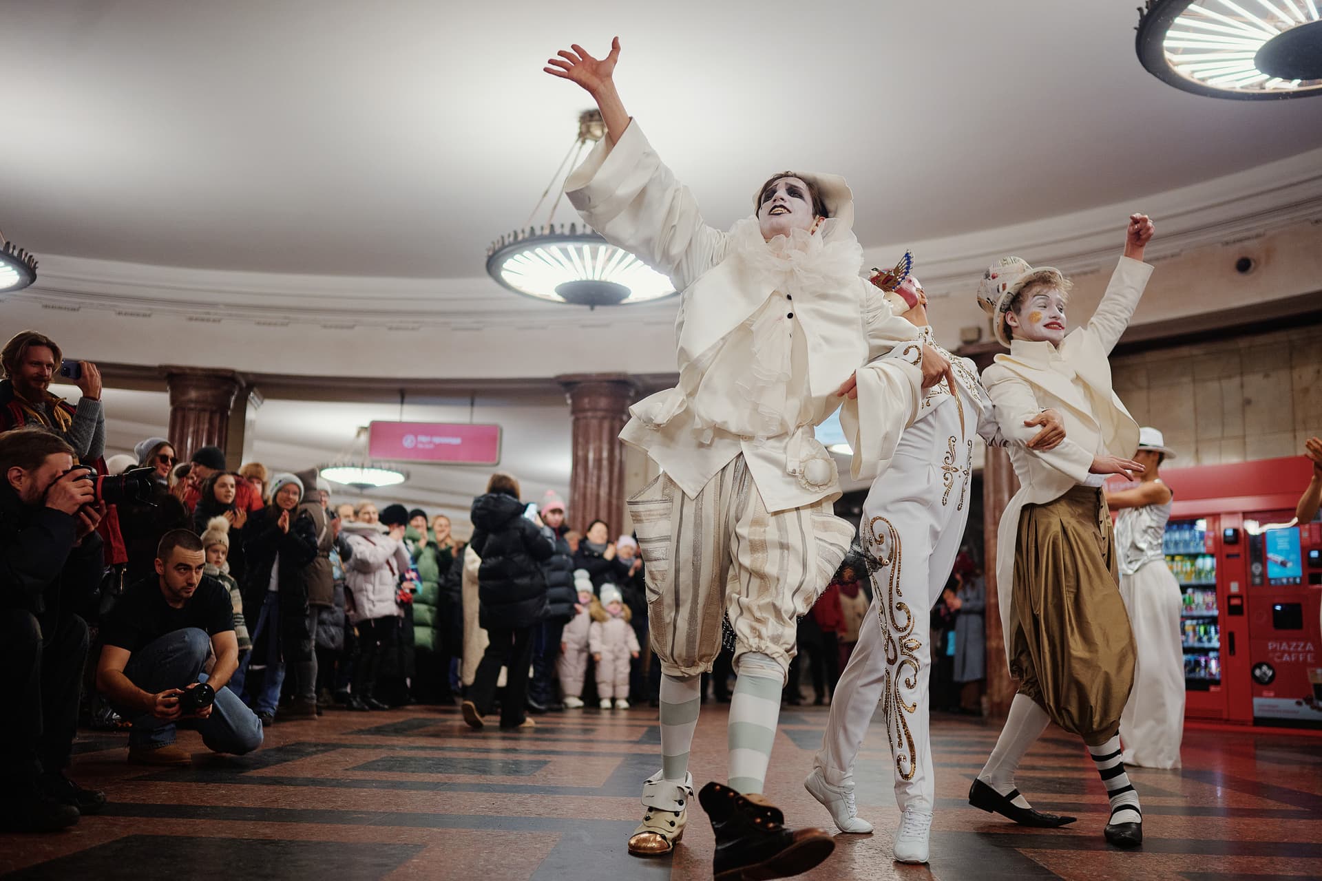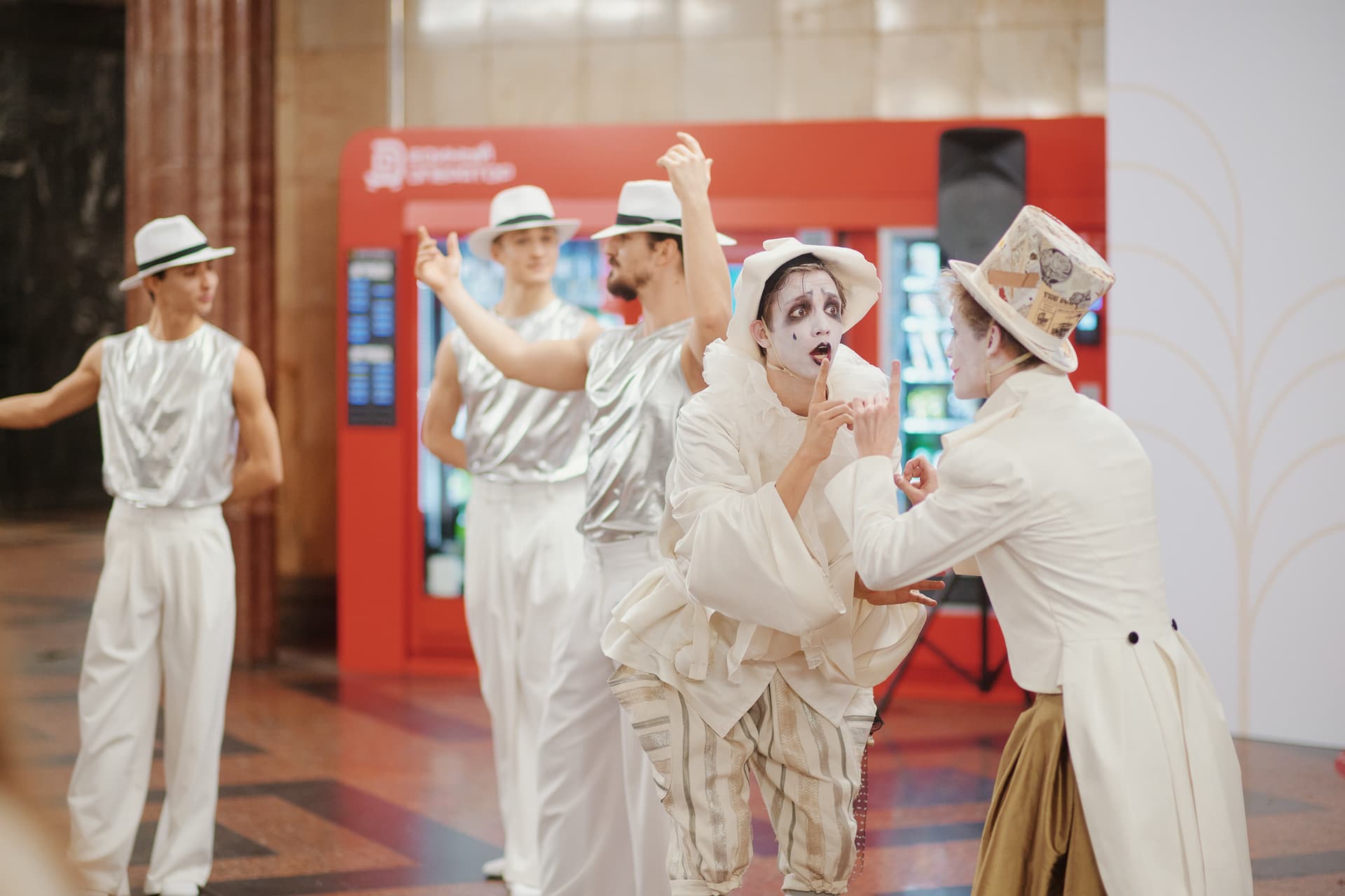 В выступлении было задействовано 10 артистов и танцоров. Вместе они создали живое театральное действие, в котором у каждого была возможность не просто увидеть, но и стать частью происходящего и почувствовать атмосферу праздника. Станция «Курская», обладающая архитектурной выразительностью и высокой проходимостью, стала временной сценической площадкой, где театр вышел за пределы традиционных залов и встретился со зрителями в самом сердце города.