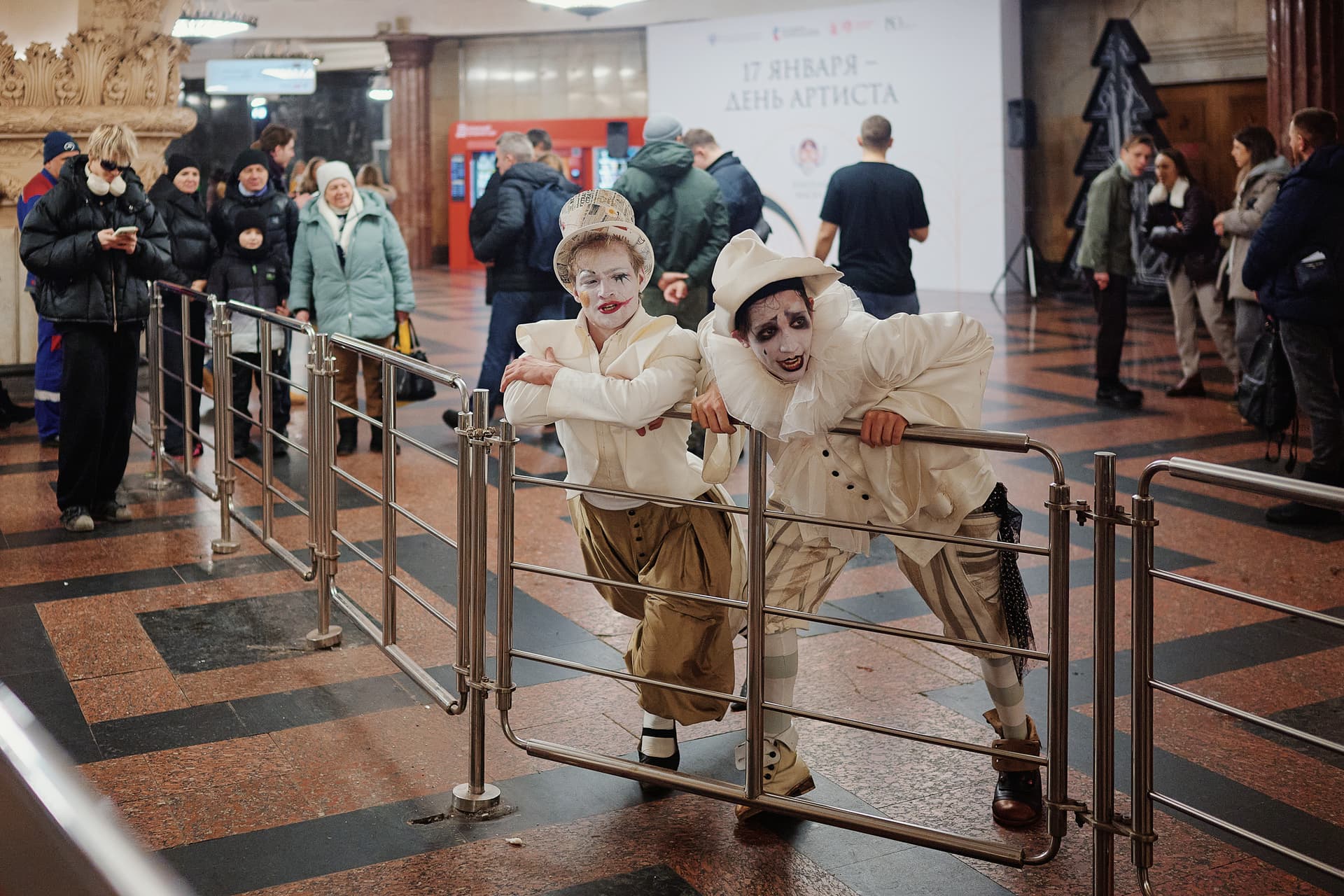 В честь первого празднования Дня артиста 17 января фестиваль и премия «Золотая маска» совместно с Московским метро организовали концерт на станции метро «Курская». Жители столицы увидели вокальные и танцевальные номера с элементами мюзикла и степа из Торжественной церемонии вручения премий «Золотая маска» в XXXI сезоне. Специально для концерта в московском метро один из режиссеров церемонии Севастьян Смышников и хореограф-постановщик Евгений Масалков адаптировали номера, которые были представлены на большой сцене.