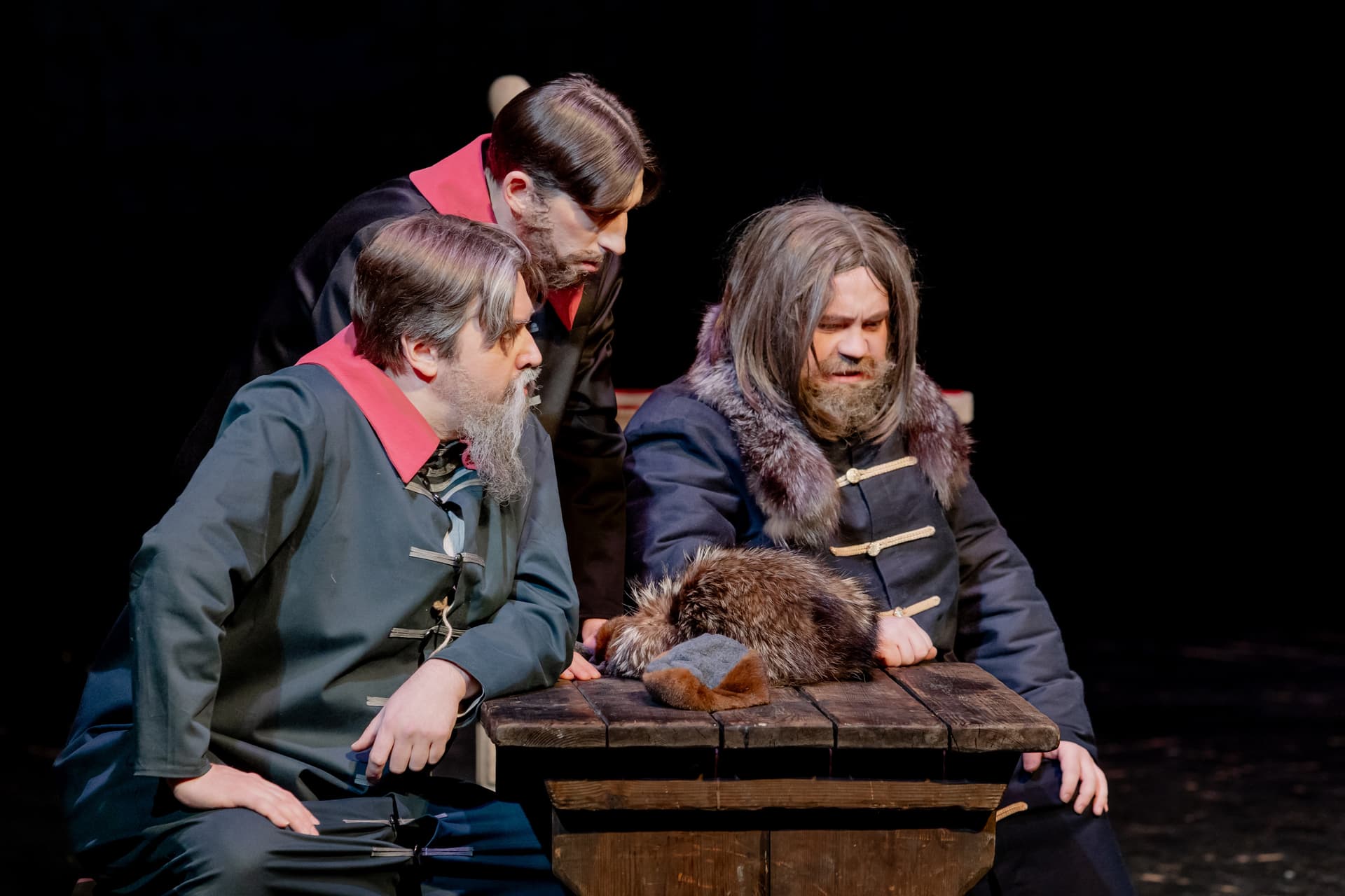 В основе сюжета пьесы «Царь и Бог» – события Великого стояния на реке Угре, происходившие в течение 1480 года. Впервые на русской драматической сцене предстали их участники – Великий князь Московский Иван III, его супруга Софья Палеолог, митрополит Московский и всея Руси Геронтий и другие представителей московского общества второй половины 15 века. Спектакль поставил режиссер Даниил Коробейников, автор пьесы — Илья Кузьменков, продюсер – Марина Шраменко, Художник-постановщик — Иван Глазунов, композитор — Алексей Стародубцев, в главной роли - актер Алексей Гиммельрейх. «Царь и Бог» - это синтез драматического действия, живой авторской музыки и пластических эпизодов.