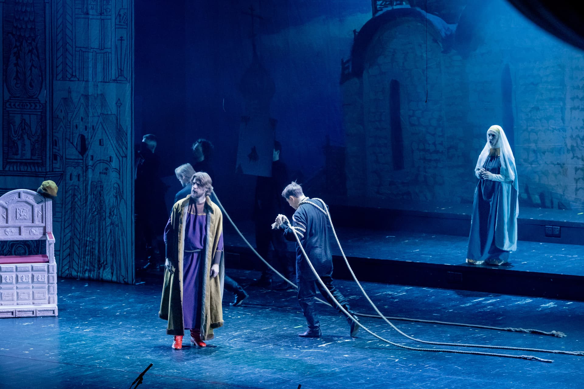 Премьера исторической драмы «Царь и Бог» состоялась в Москве на площадке Московского государственного Академического театра «Русской песни». Спектакль приурочен к 545-летию событий «Великого стояния на реке Угре» и 585-летию со дня рождения Великого князя Московского Ивана III. Спектакль создан при поддержке Президентского Фонда культурных инициатив, информационный партнер – Синодальный отдел по взаимоотношениям Церкви с обществом и СМИ.