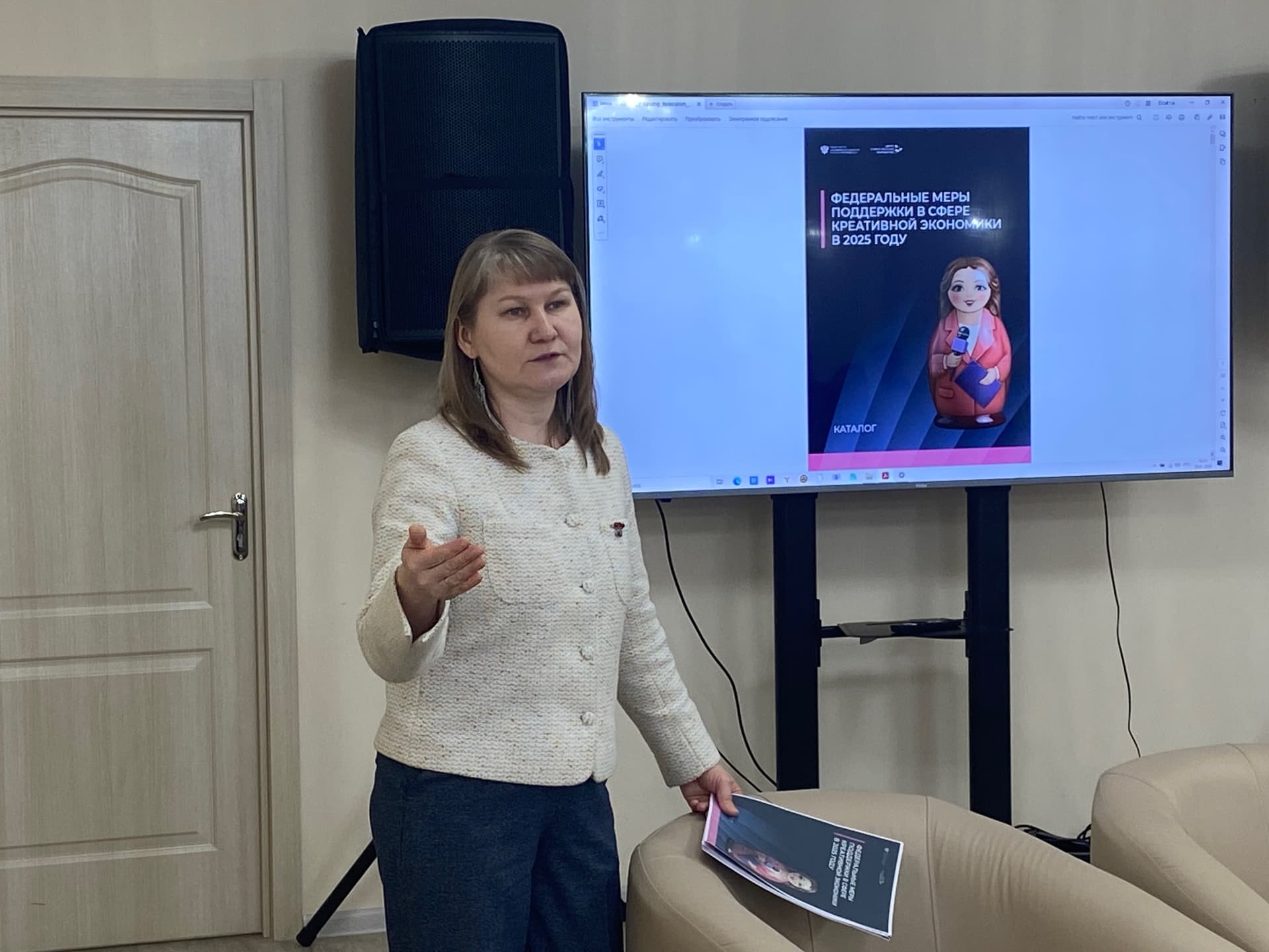 Директор Республиканского центра народного творчества, руководитель ПО ПФКИ Эльвира Куклина поделилась информацией о федеральной поддержке сектора креативной экономики и проектов креативных индустрий.