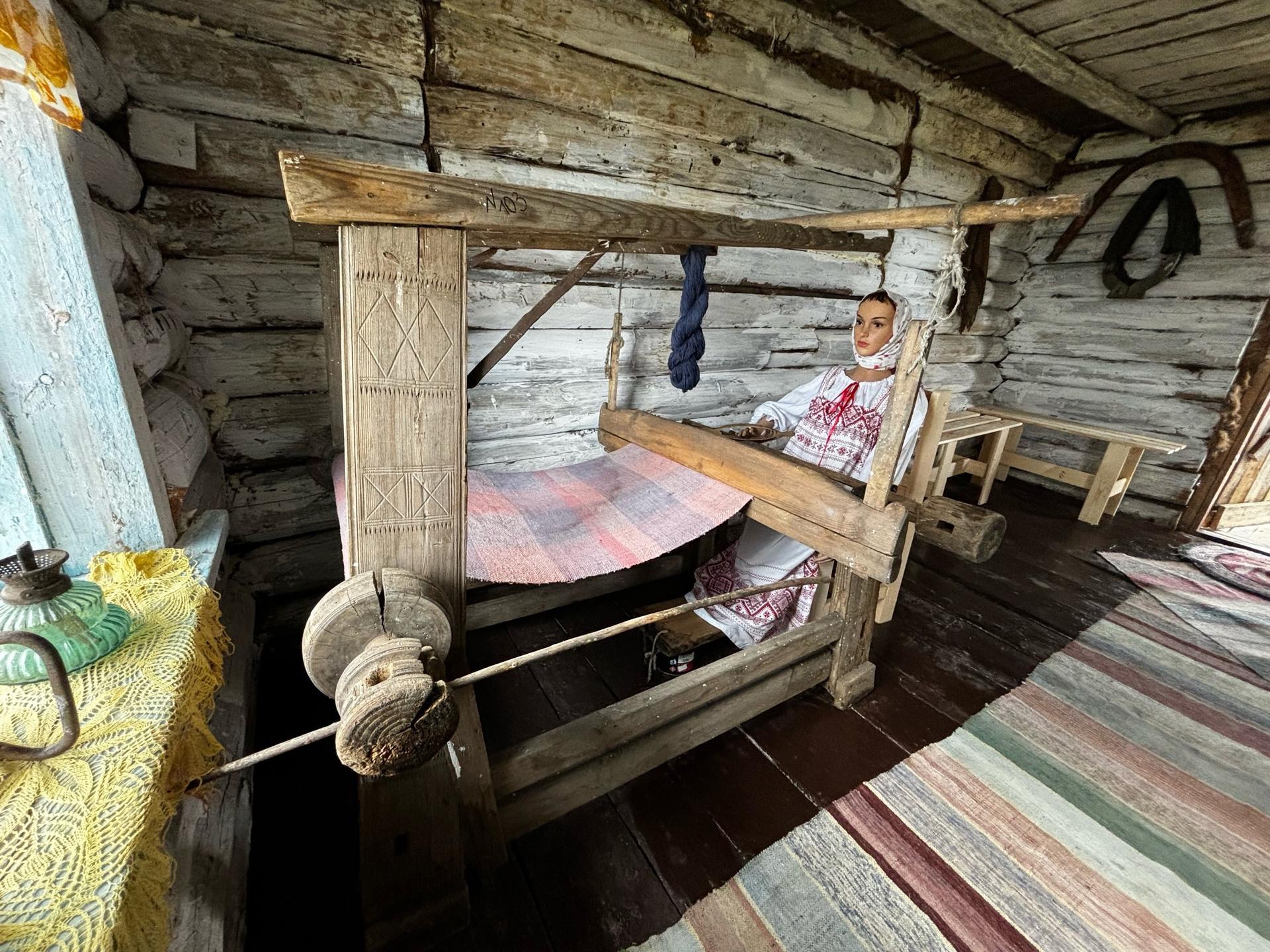 В этнографическом комплексе можно увидеть подлинные образцы деревянного зодчества второй половины XIX – первой половины XX веков: старинные деревенские дома, перевезенные из разных сёл и деревень Курганской области. Самой старой избе более 170 лет! Центром подворья стал деревянный дом состоятельных крестьян. У него удивительная судьба. Изначально дом стоял в селе Рычково Белозерского района. Затем был разобран и перевезен в Кетовский район. Спустя годы дом снова вернули. Вокруг него – традиционное подворье с постройками, фигурами домашнего скота и звуковым сопровождением деревенского быта. В доме воссоздан традиционный крестьянский быт начала XX века, с подлинными предметами домашнего обихода. Среди наиболее интересных и ценных экспонатов – старинный ткацкий станок.